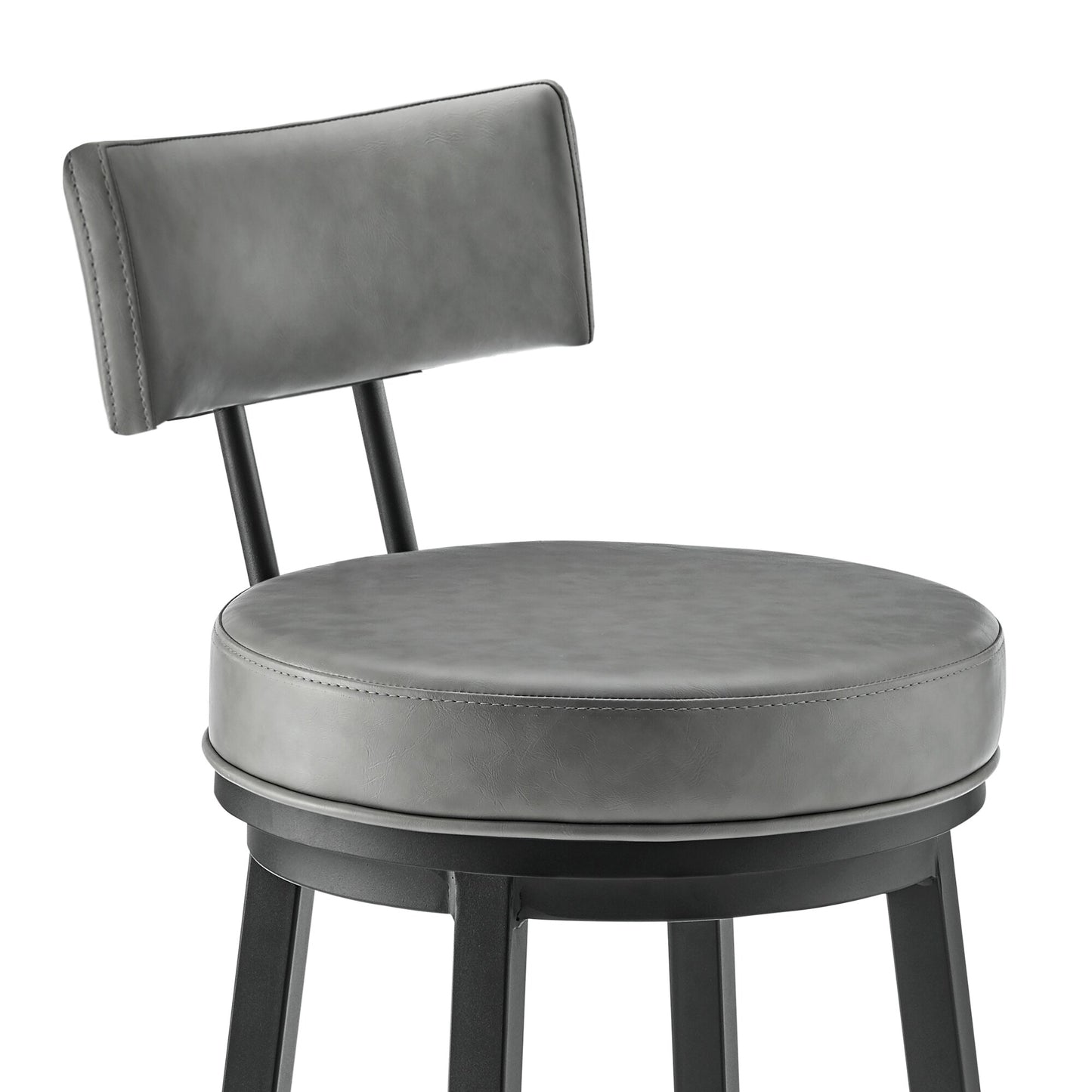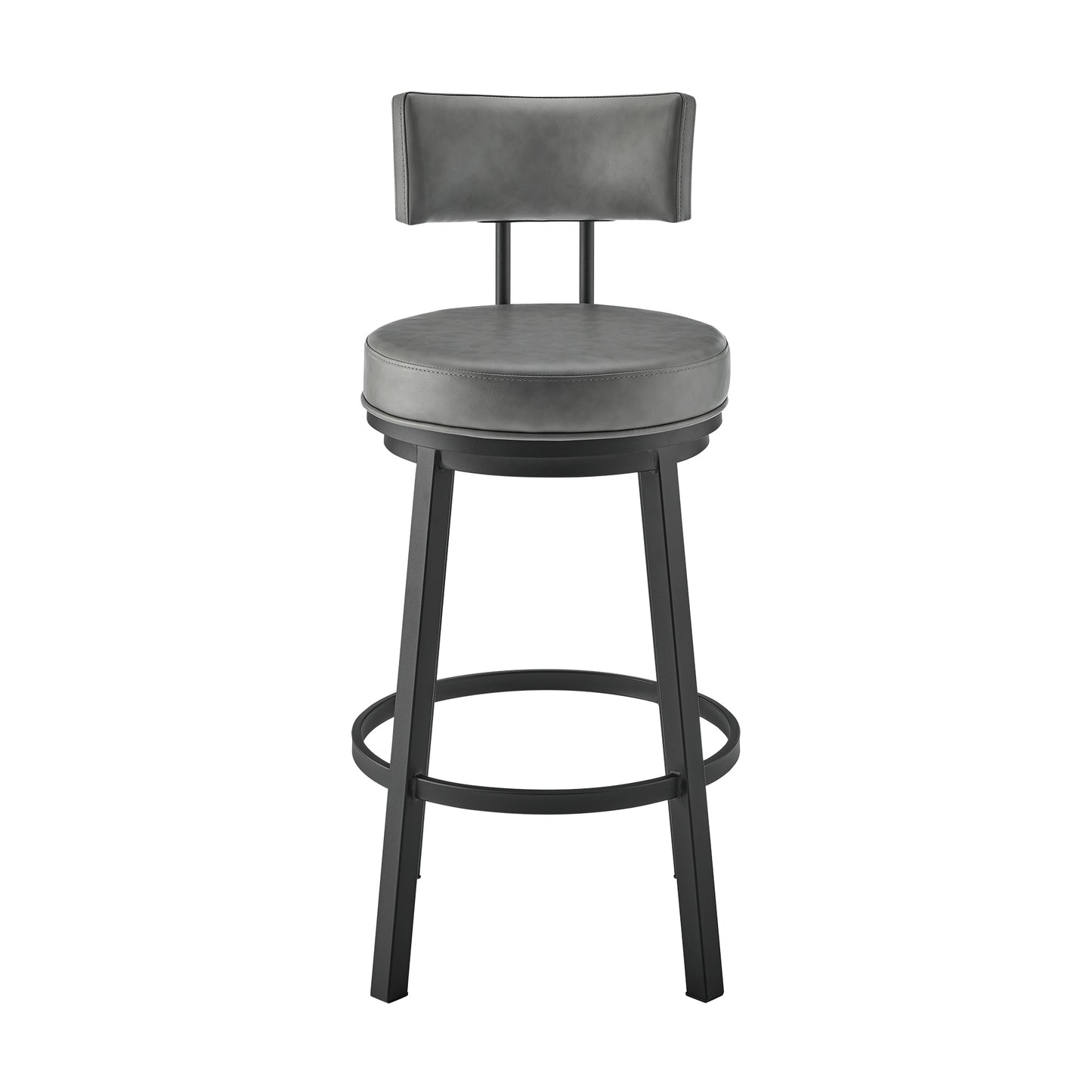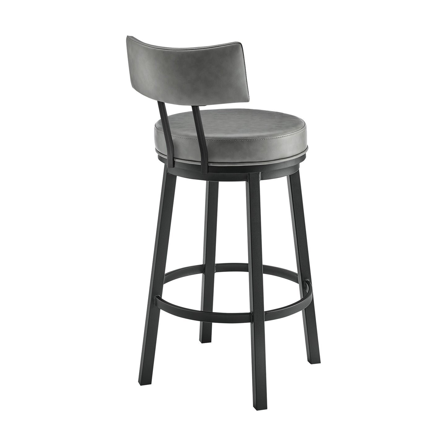 Embrace the modern and functional appeal of the Dalza Swivel Counter or Bar stool in Faux Leather and Metal by Armen Living. The bar stool features a padded and streamlined back, resting upon 4-sturdy legs to serve as modern and comfy addition to your home. Its generously padded back and seat are topped with nearly tailored faux leather upholstery. Faux leather does not crack or fade easily; it is stain-resistant and UV resistant to serve you for years to come. Compliment any bar, high dining area, or adjustable desk with the elegance and charm of our metal bar stool. Crafted with quality and comfort in mind, the barstool can be used anywhere from the kitchen and living area to your workspace. A wonderful full 360-degree swivel function allows for maximum mobility. The smooth glide swivel function allows you to change directions with ease to become your new favorite seat.