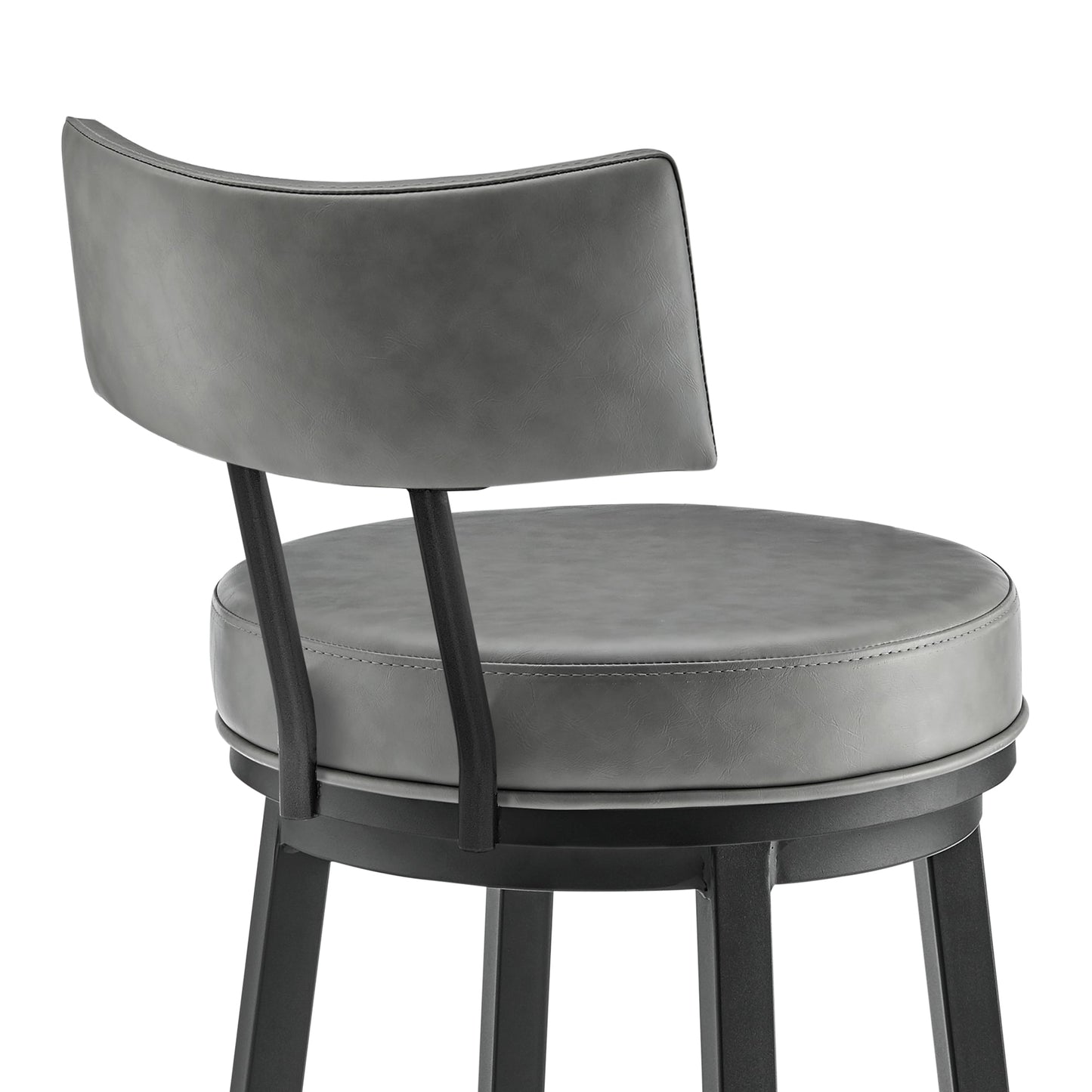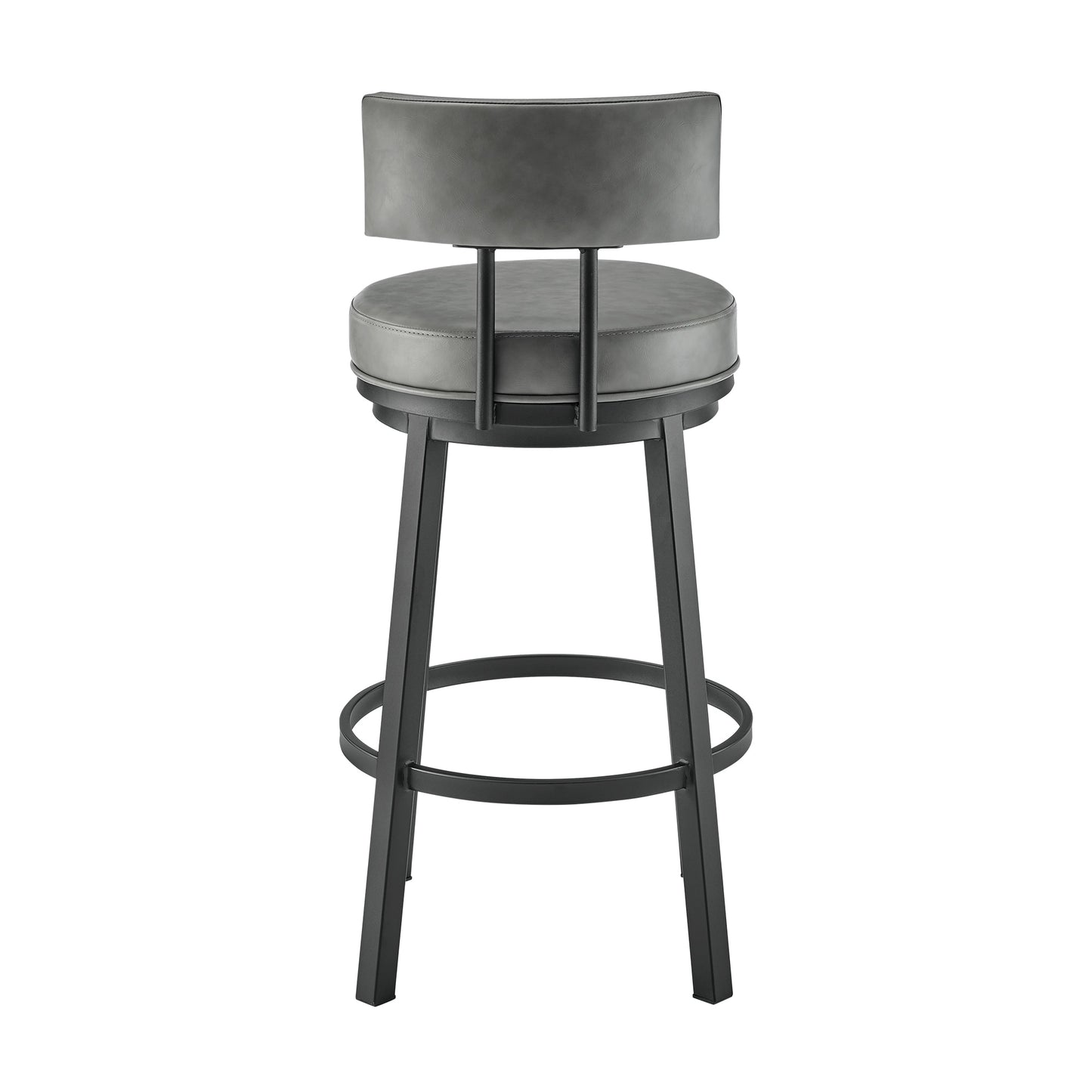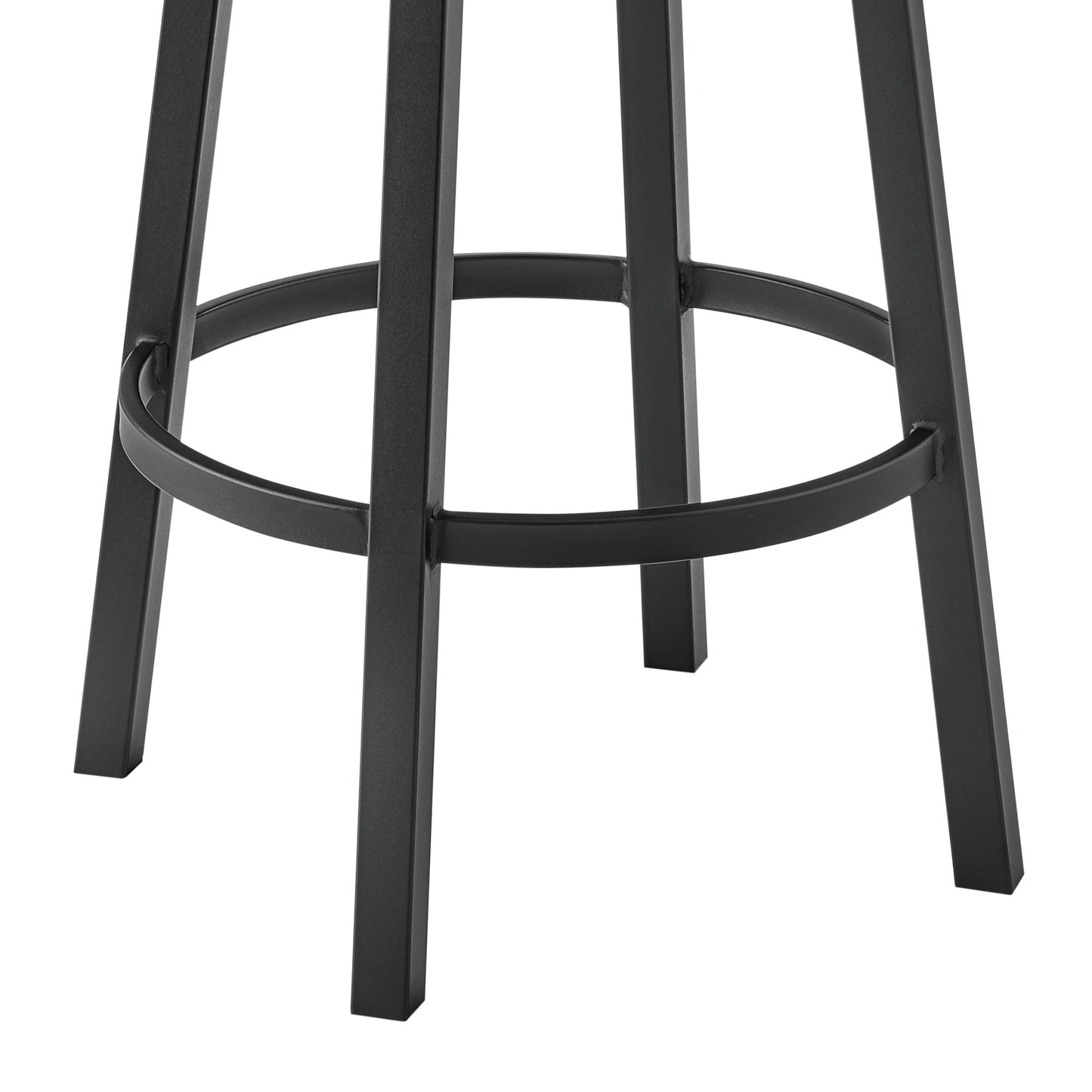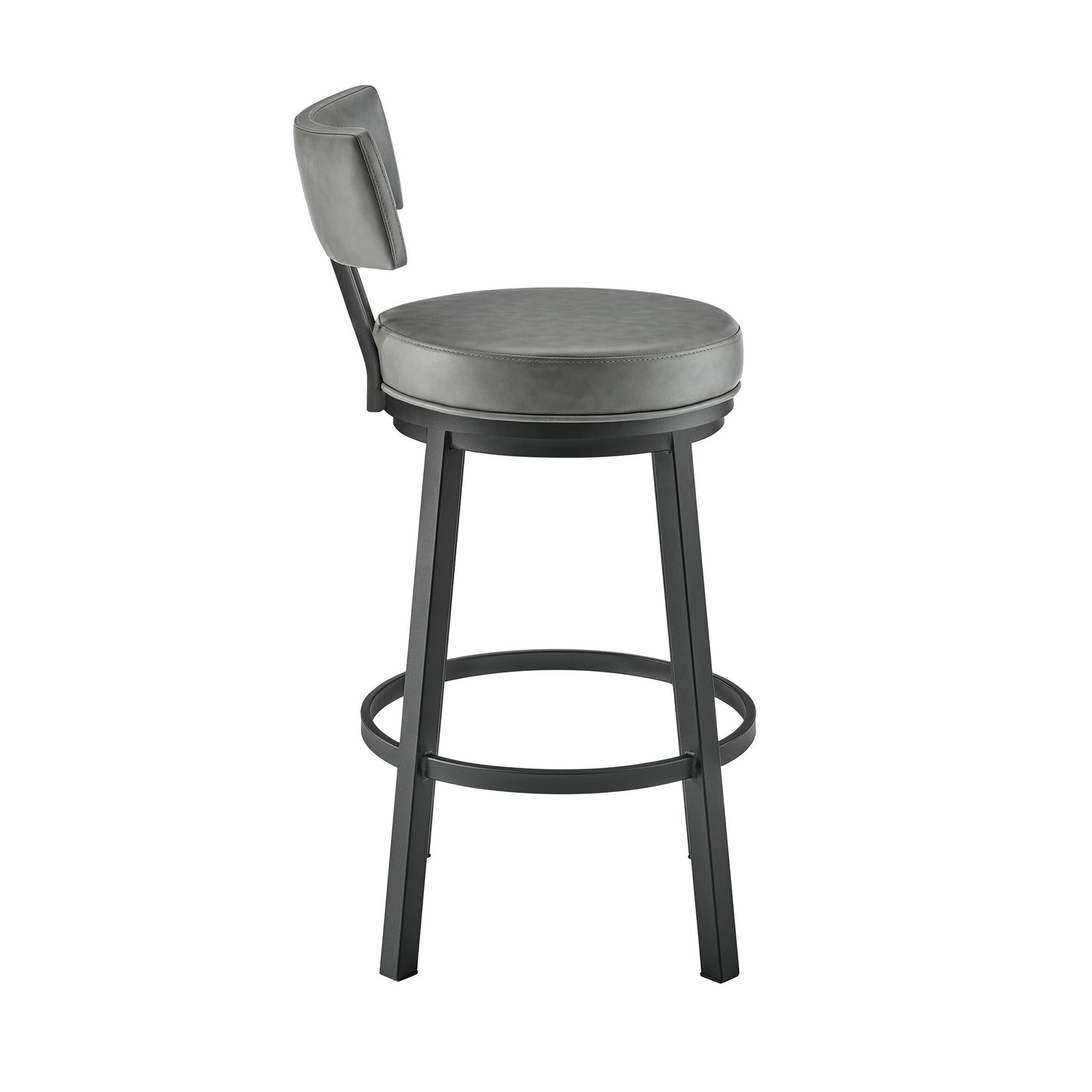 Embrace the modern and functional appeal of the Dalza Swivel Counter or Bar stool in Faux Leather and Metal by Armen Living. The bar stool features a padded and streamlined back, resting upon 4-sturdy legs to serve as modern and comfy addition to your home. Its generously padded back and seat are topped with nearly tailored faux leather upholstery. Faux leather does not crack or fade easily; it is stain-resistant and UV resistant to serve you for years to come. Compliment any bar, high dining area, or adjustable desk with the elegance and charm of our metal bar stool. Crafted with quality and comfort in mind, the barstool can be used anywhere from the kitchen and living area to your workspace. A wonderful full 360-degree swivel function allows for maximum mobility. The smooth glide swivel function allows you to change directions with ease to become your new favorite seat.