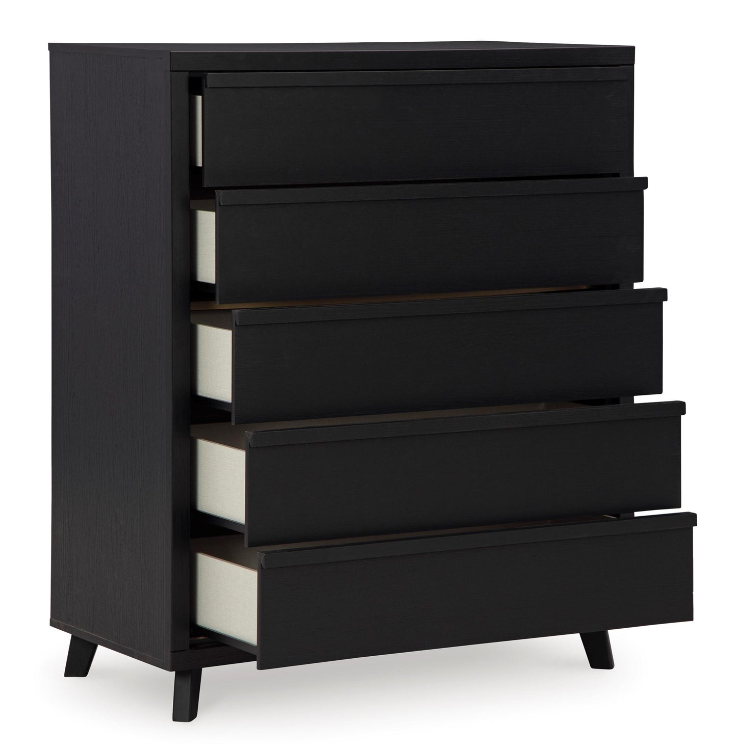Sophisticated style for the savvy shopper. This chest of drawers prioritizes affordable, on-trend design. Its subtle replicated texture recalls the natural beauty of wood, highlighting the slatted styling. And a matte black finish savvily suits different approaches to modern aesthetics. Mix and match with light and bright hues, or pair with other dark tones for a moody look.