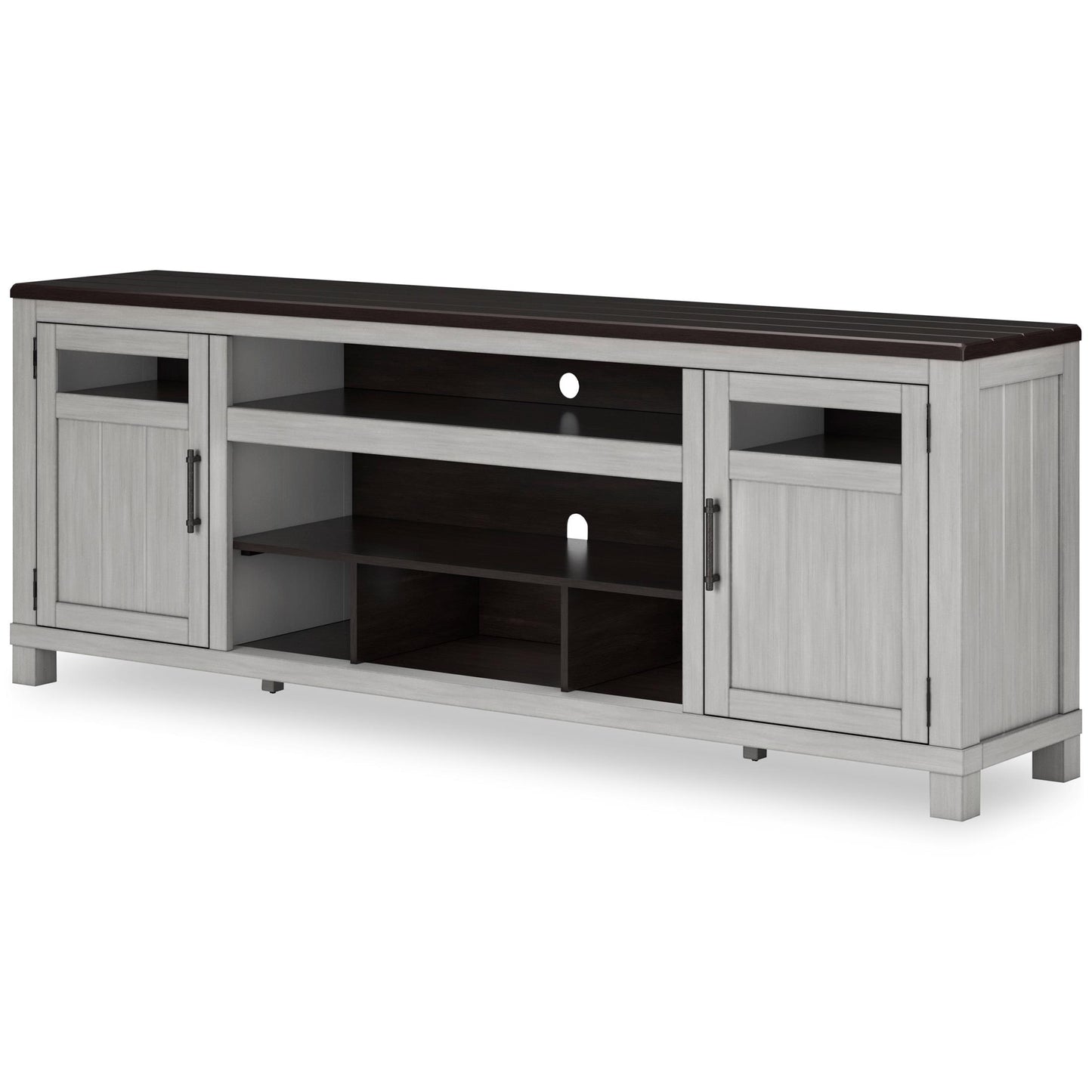 Make a farmhouse-inspired statement with our Darborn TV stand. Beautifully crafted to stand the test of time, the planked effect and clean two-tone finish lend a relaxing vintage feel. With two cabinets (each with an adjustable shelf) and an open cubby, it offers plenty of storage to house all of your electronic needs. Enhancing the experience: the optional fireplace insert (sold separately) brings a touch of warmth and beautiful ambiance to your living room.