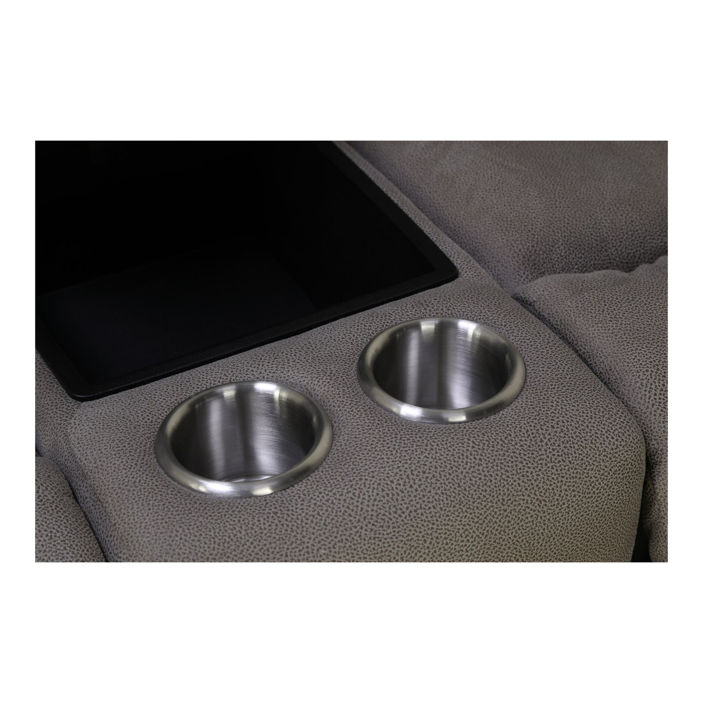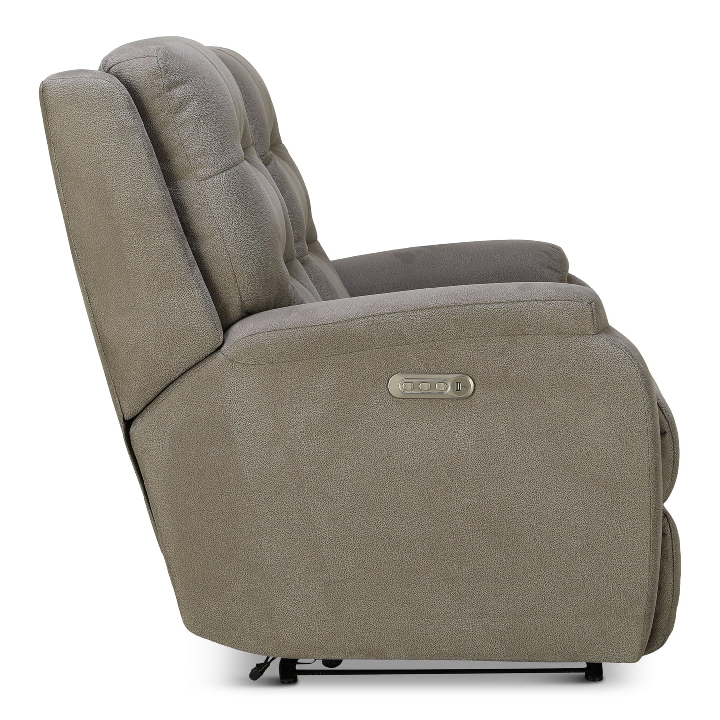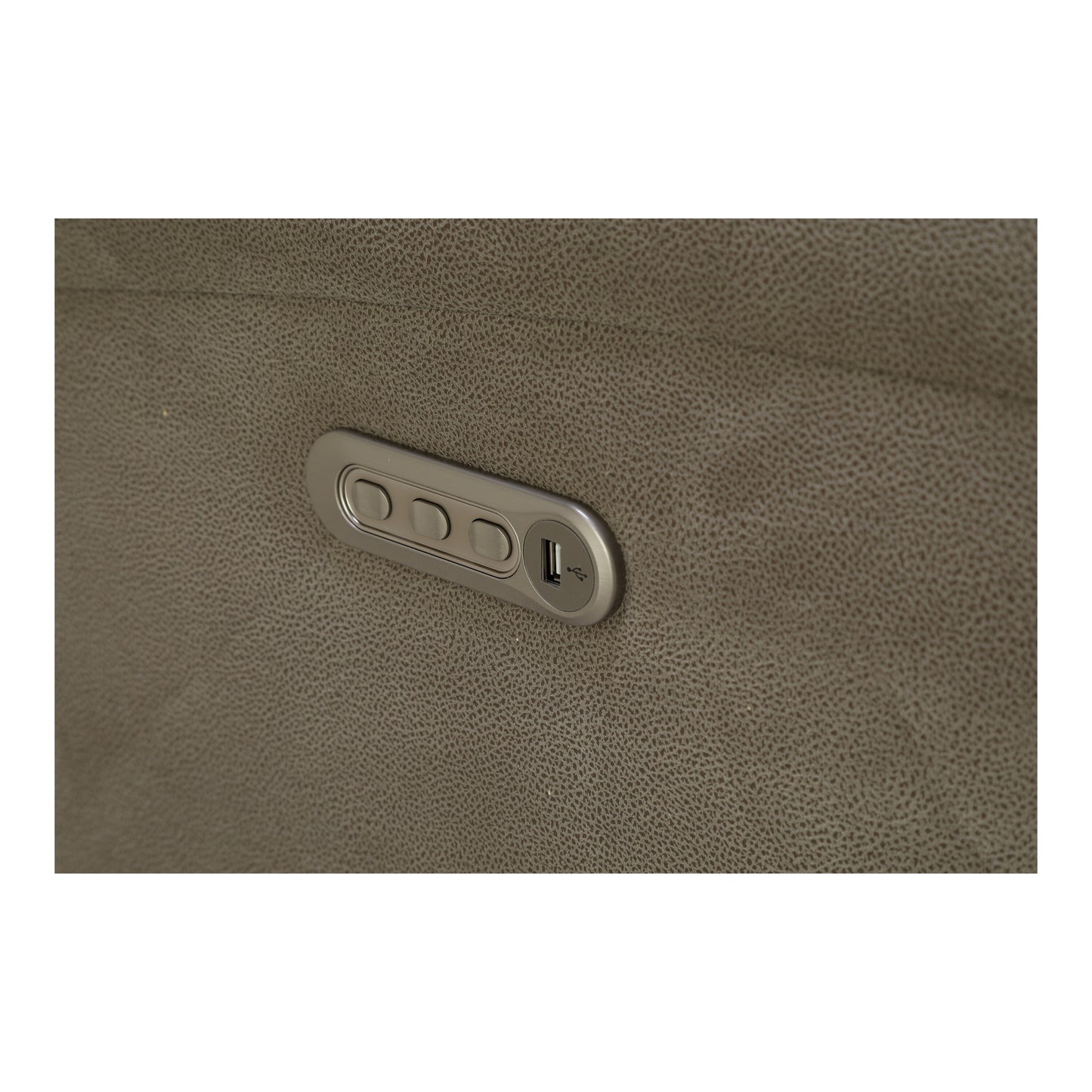 The Darby power reclining loveseat with console has a transitional motion style that features a refined, rounded pad-over track arm that is lined with blind seams. It's pull-tufted back cushions create a unique subtle pattern and added pockets of comfort. This power reclining loveseat's proven comfort combination is created from the generously scaled triple-divide back, contour seating, and chaise pad design. The Blue Steel Spring™ ensures this piece is in it for the long-haul. The power button adjusts the headrest and recline.