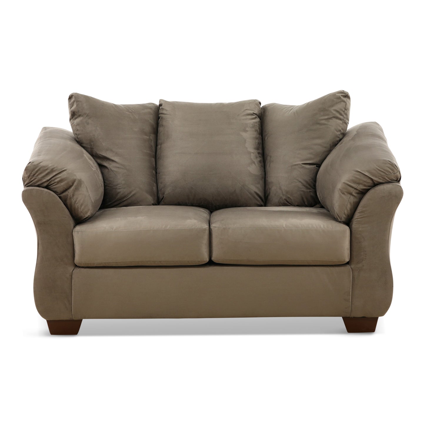 The beauty of the Darcy loveseat is made to suit your appreciation for clean, contemporary style. A striking flared frame, comfy pillow top armrests and an ultra-soft upholstery that holds up to everyday living complete this fashion statement. Frame constructions have been tested with various equipment to simulate the home and transportation environments to insure durability.