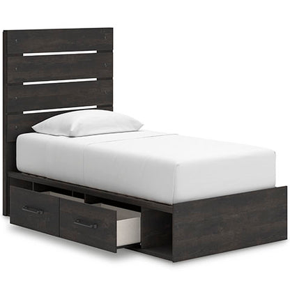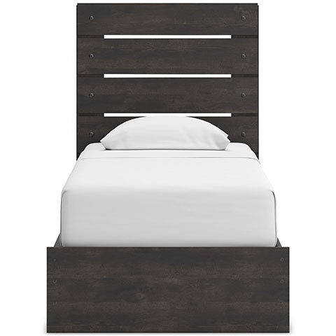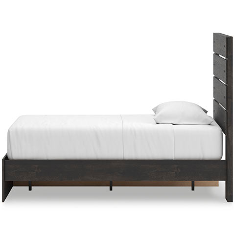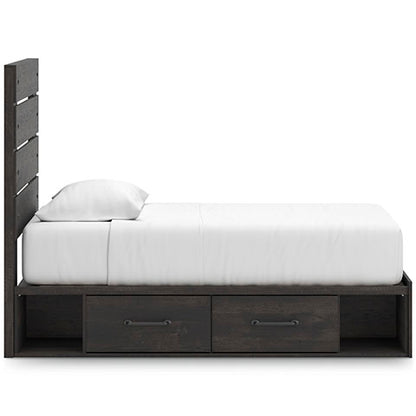 This panel storage bed puts a casually chic twist on everyday function. Its rustic charcoal finish pairs well with other neutrals and pops of color alike, giving you the flexibility to change up your aesthetic as you please. Smooth-gliding drawers discreetly tuck away clutter without taking up extra floorspace.