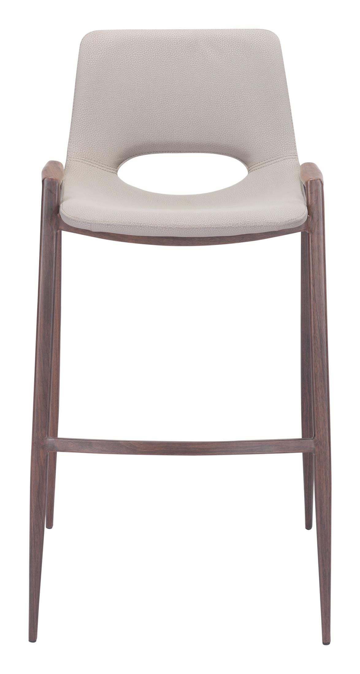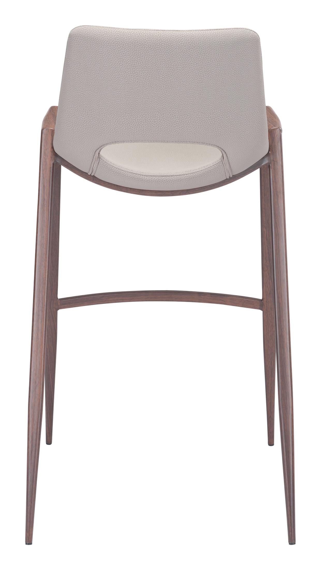 This bar chair has mid century modern urban lines and looks great in any space, with a heavy duty vinyl covering and a sturdy steel frame, and finished legs in walnut veneer coating that can fit in any home kitchen, dining area, or bar.