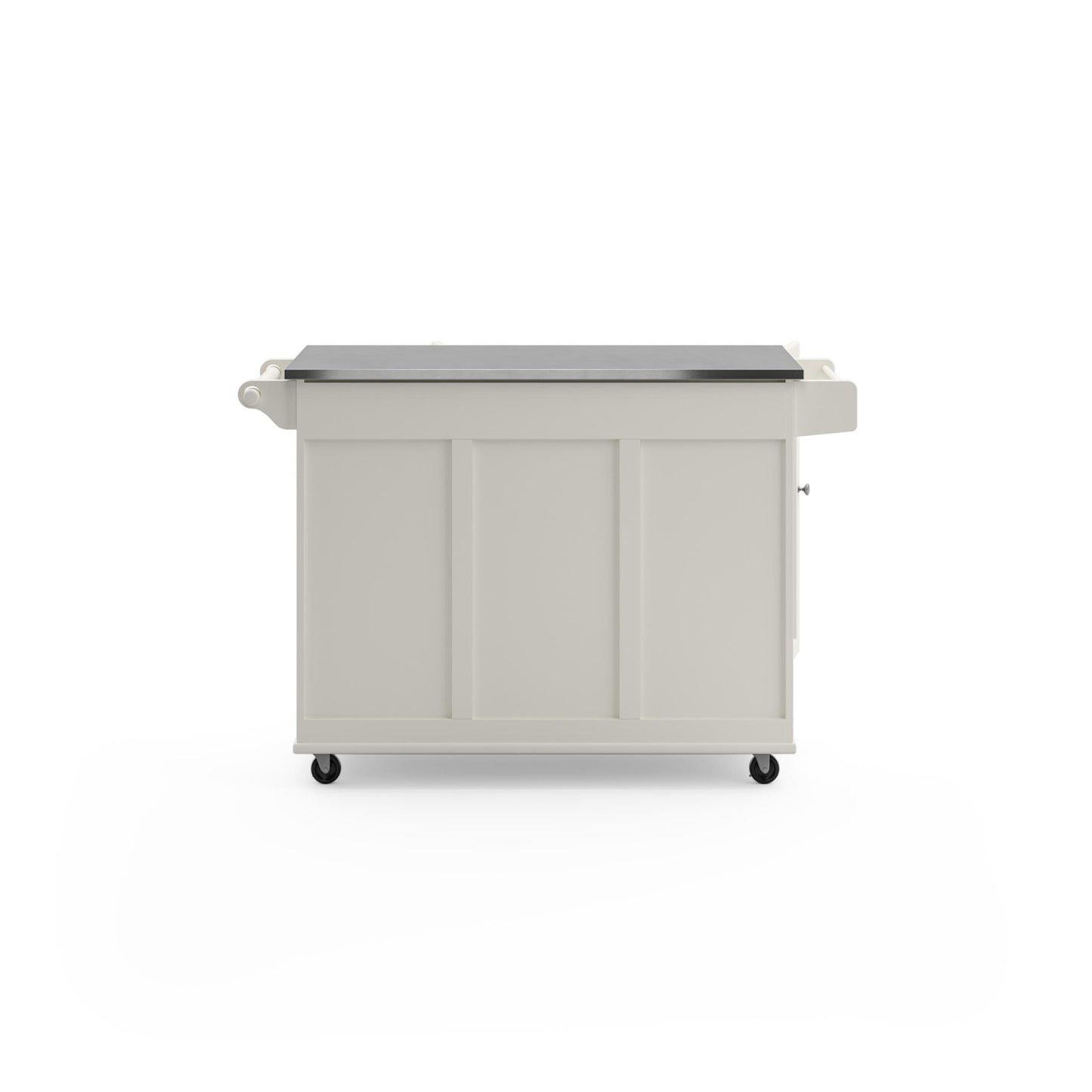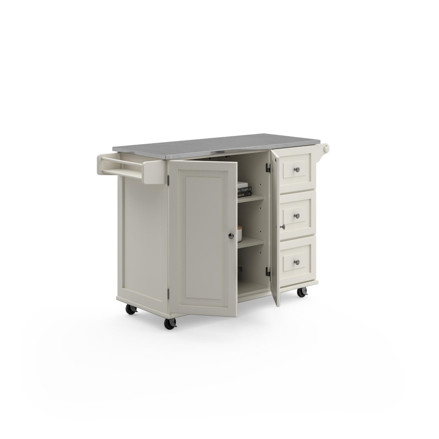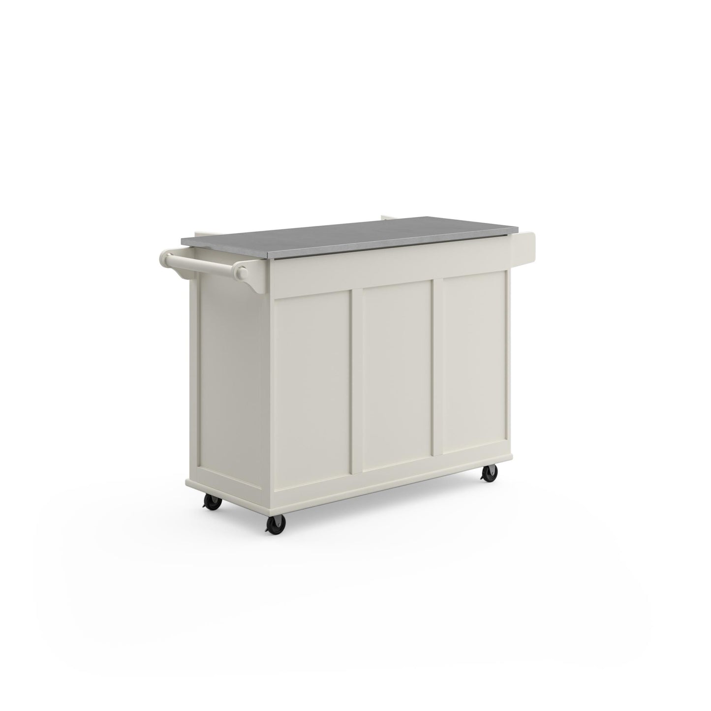 Maximize worksurface area and storage space in your kitchen with this Dolly Madison Kitchen Cart by Homestyles. The stainless steel surface |sits atop a durable engineered wood frame, which can be easily moved throughout your space on lockable casters to bring the convenience right where it’s needed most. Loaded with space-saving features and storage options, it brings the ultimate in versatility and charm to your kitchen.