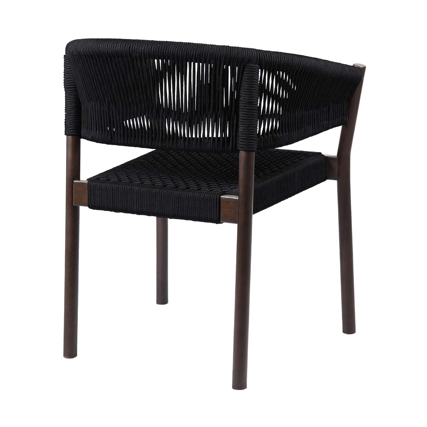 Doris Indoor Outdoor Dining Chair in Dark Eucalyptus Wood with Black Rope (Set of 2)