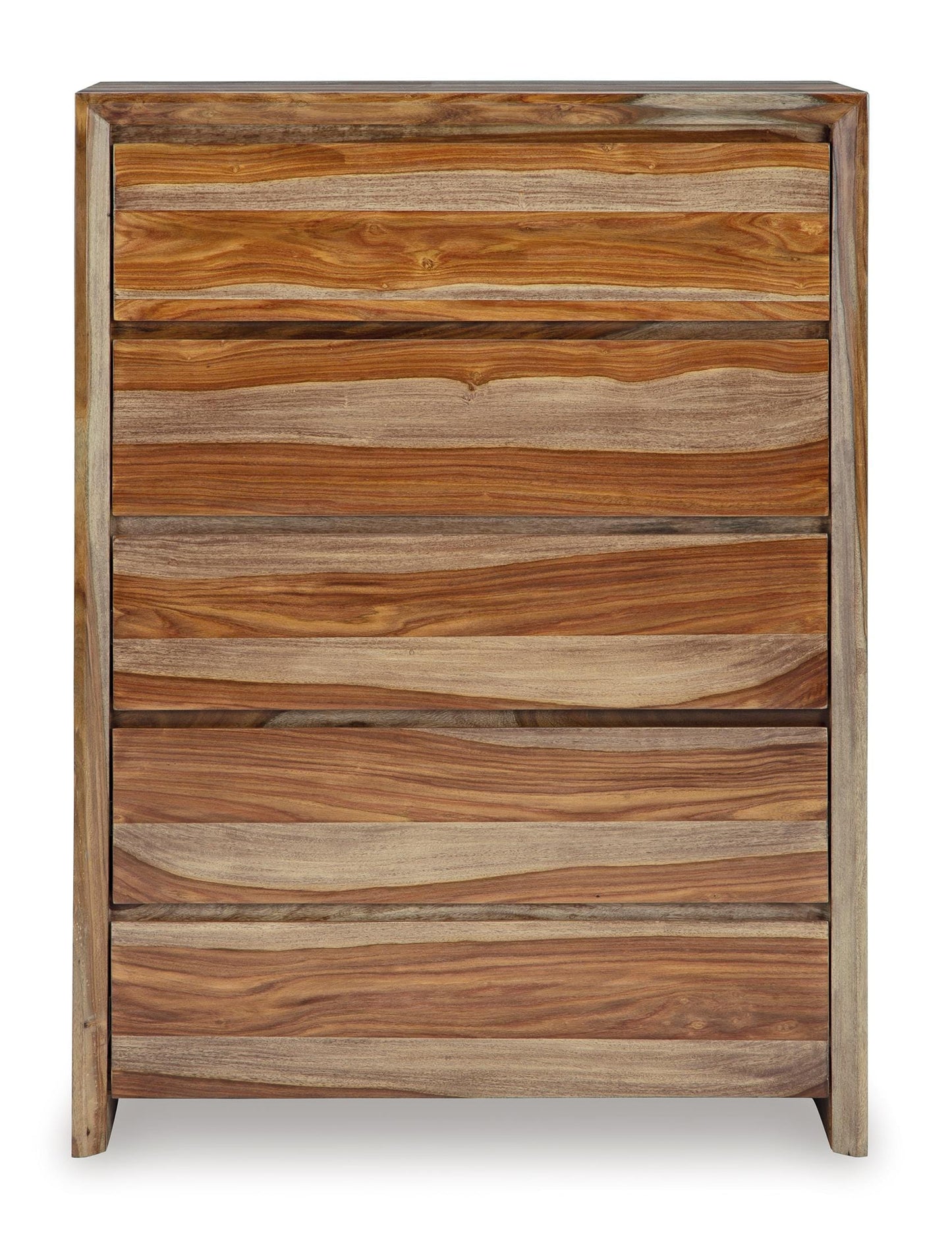 Discover something extraordinary with this clean-lined chest of drawers. The rich natural beauty of the wood, enhanced with a clear wood-tone finish, brings an organically stunning vibe to your bedroom. Strikingly simple drawers lend a hand with keeping your wardrobe in check and conquering clutter.