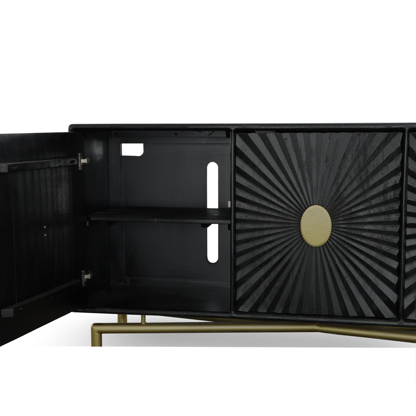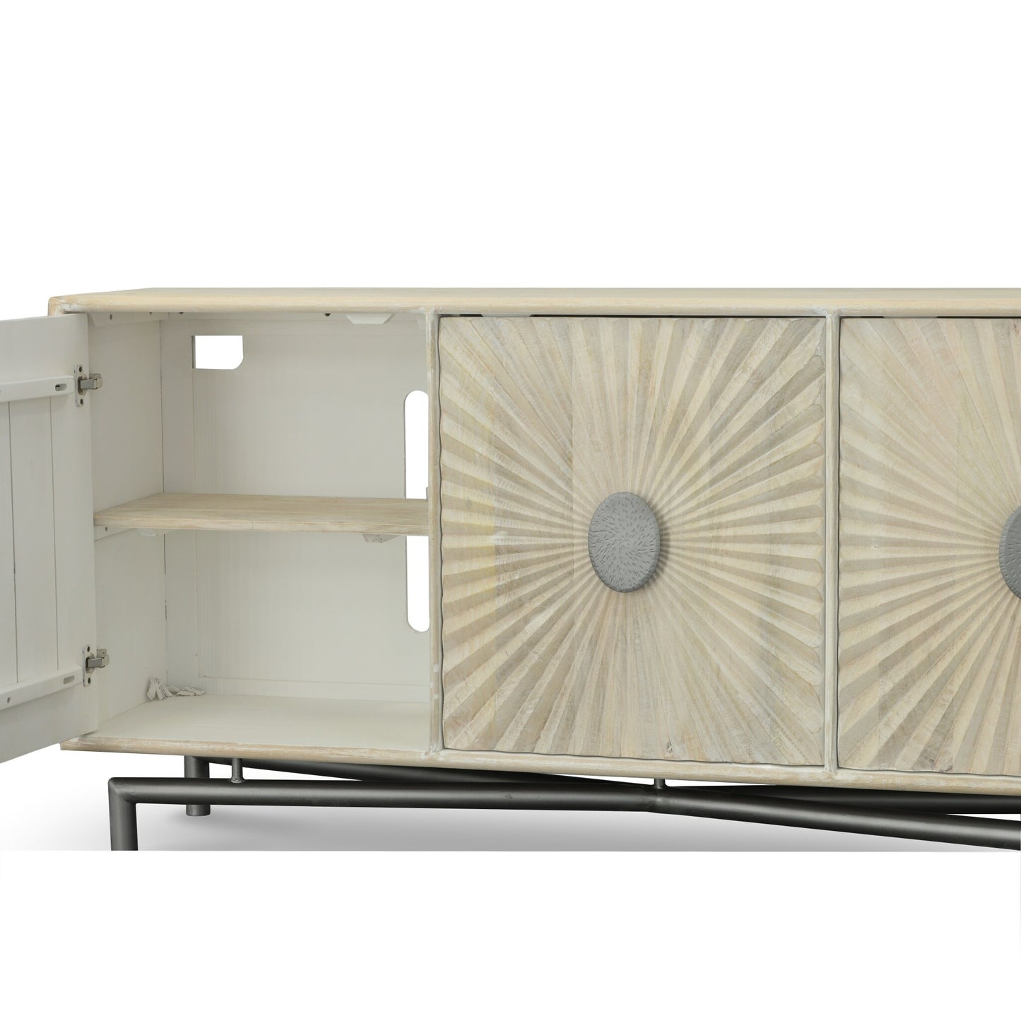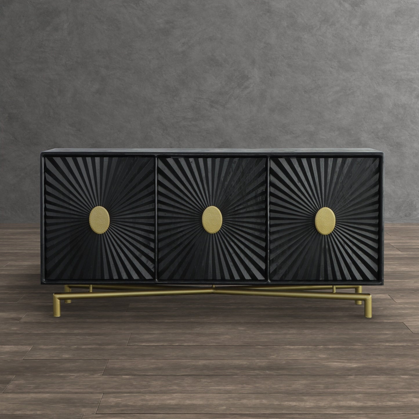Add a touch of elegance to your living space with the distinctive Eclipse media console. Its three doors are accented with a unique pattern that is undeniably fashionable. Look inside and you’ll find adjustable wood shelves and a generous storage compartment for all of your electronics. This console’s clean lines and sophisticated silhouette are brought to life with a multi-color finish that will complement any home decor. Impeccable details and the quality you deserve – that’s what makes L Design Studio special. We’ve carefully chosen each piece in the collection to last for decades while giving your home a unique touch. Indulge yourself, nurture your family, and welcome your guests. With a style this timeless, making your home beautiful is easy. Available online and at select locations near you.