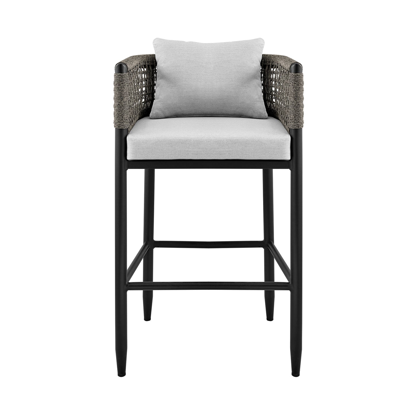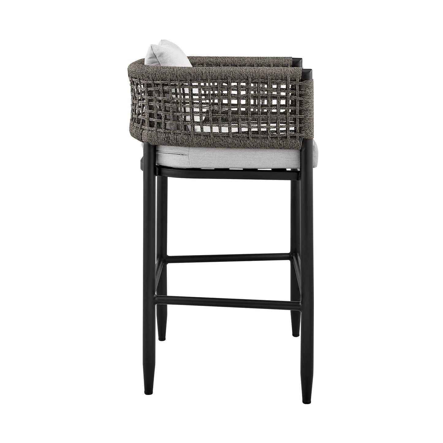Felicia Outdoor Patio Bar Stool in Aluminum with Gray Rope and Cushions