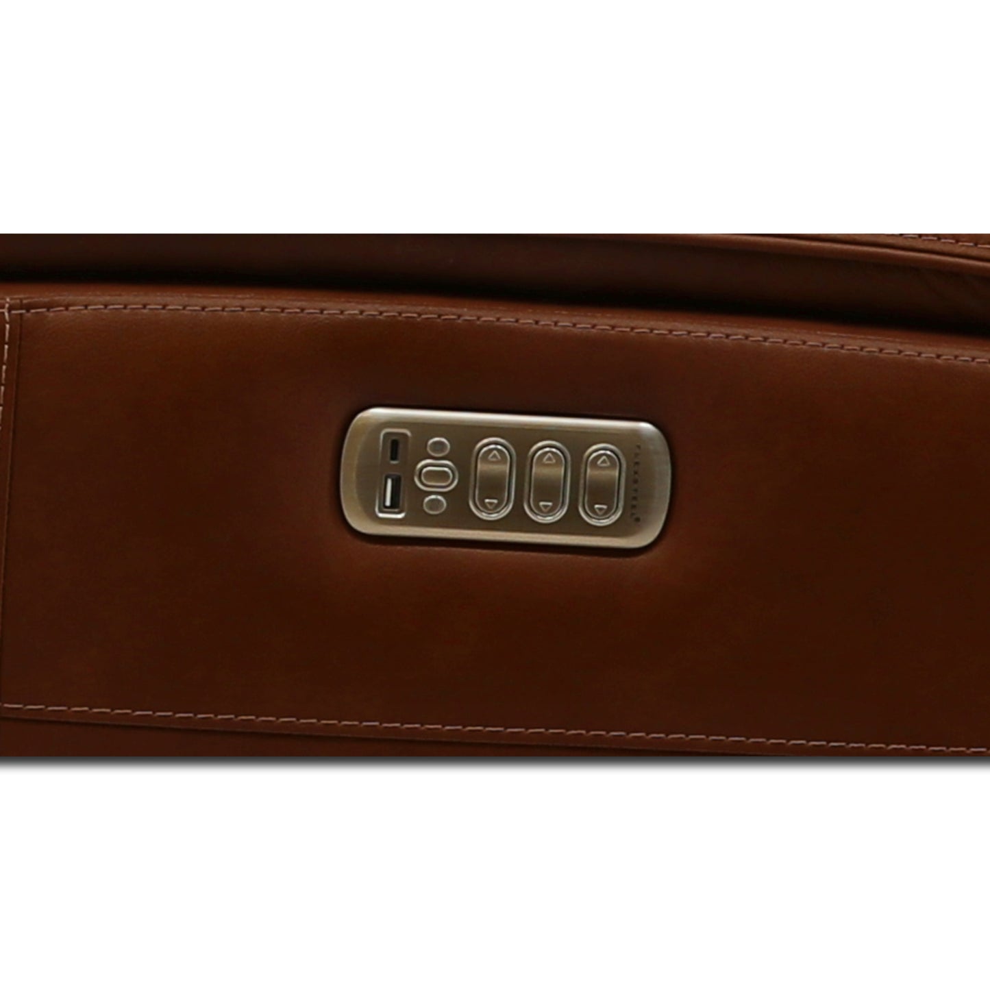 Treat yourself to a comfortable yet refined sitting experience with the Karson leather power reclining sectional with power headrests and lumbar. This generously scaled frame is upholstered in a caramel brown leather and features contoured seats and padded arms with a unique sculptural shape and welt trim. Power recline, headrest and lumbar control on each end seat allows for customized comfort and included USB ports provide convenient device charging. The Zero Gravity recline technology gives the feeling of weightlessness while Flexsteel's patented Blue Steel Spring™ provides lasting seat support.