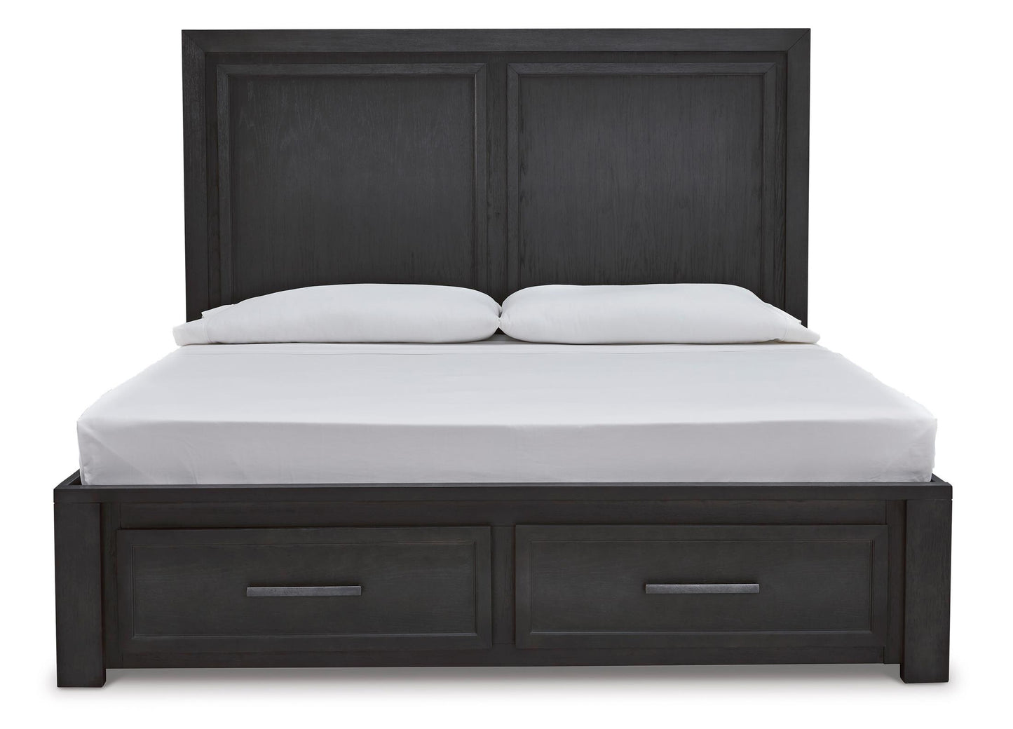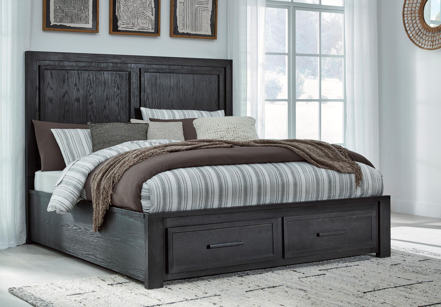 The Foyland panel storage bed is casual style simply done right. Its two-tone color scheme and picture frame headboard provide just the right touch of contemporary charm. Two deep storage drawers generously accommodate your wardrobe needs with ease.