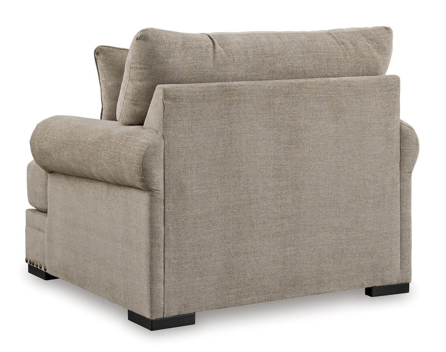 Looking to enhance your home's visual appeal? This oversized chair offers sophisticated design, comfort and elegance with tonal colors, roll arms and nailhead accents. Enjoy optimal coziness as you nestle into luxurious soft upholstery and feather-blend cushions. Perfect for modern spaces, it's just the spot to sit back and relax in style.
