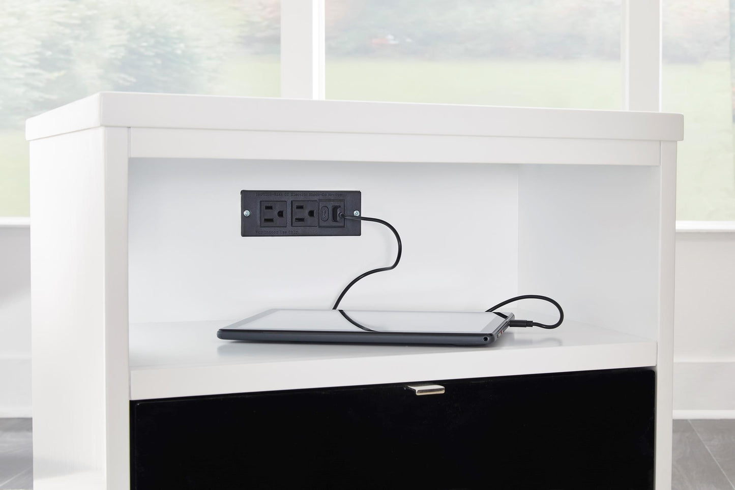 Combining a high-gloss white finish with a black drawer front, this chairside end table proves opposites really do attract. It's the perfect blend of modern style and functionality, with plenty of space for essentials and convenient USB charging. What a smart choice on so many levels.