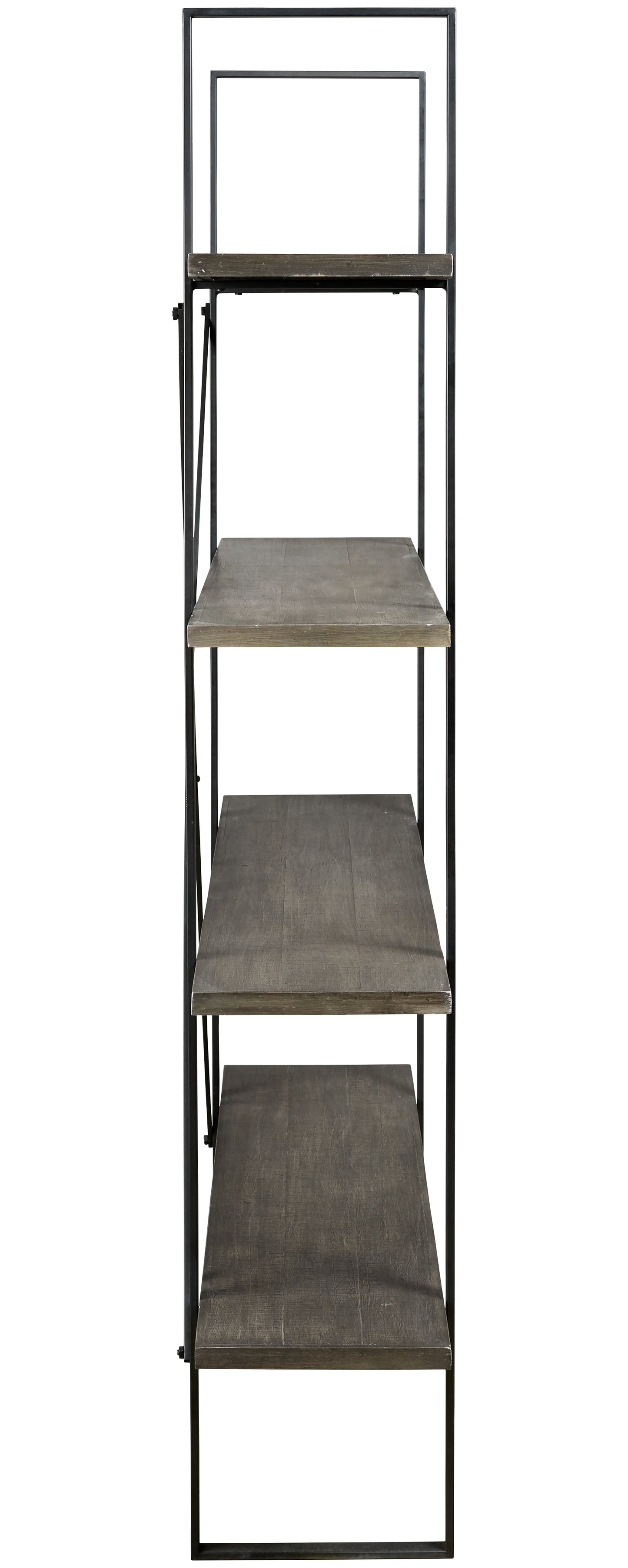Got books? Bring them to this bookcase. Industrial mix of dark wood and black metal brings trendsetting vibes to your home. Four sturdy shelves hold your belongings with ease. Mix in some metallic decor for a home office look you can’t refuse.