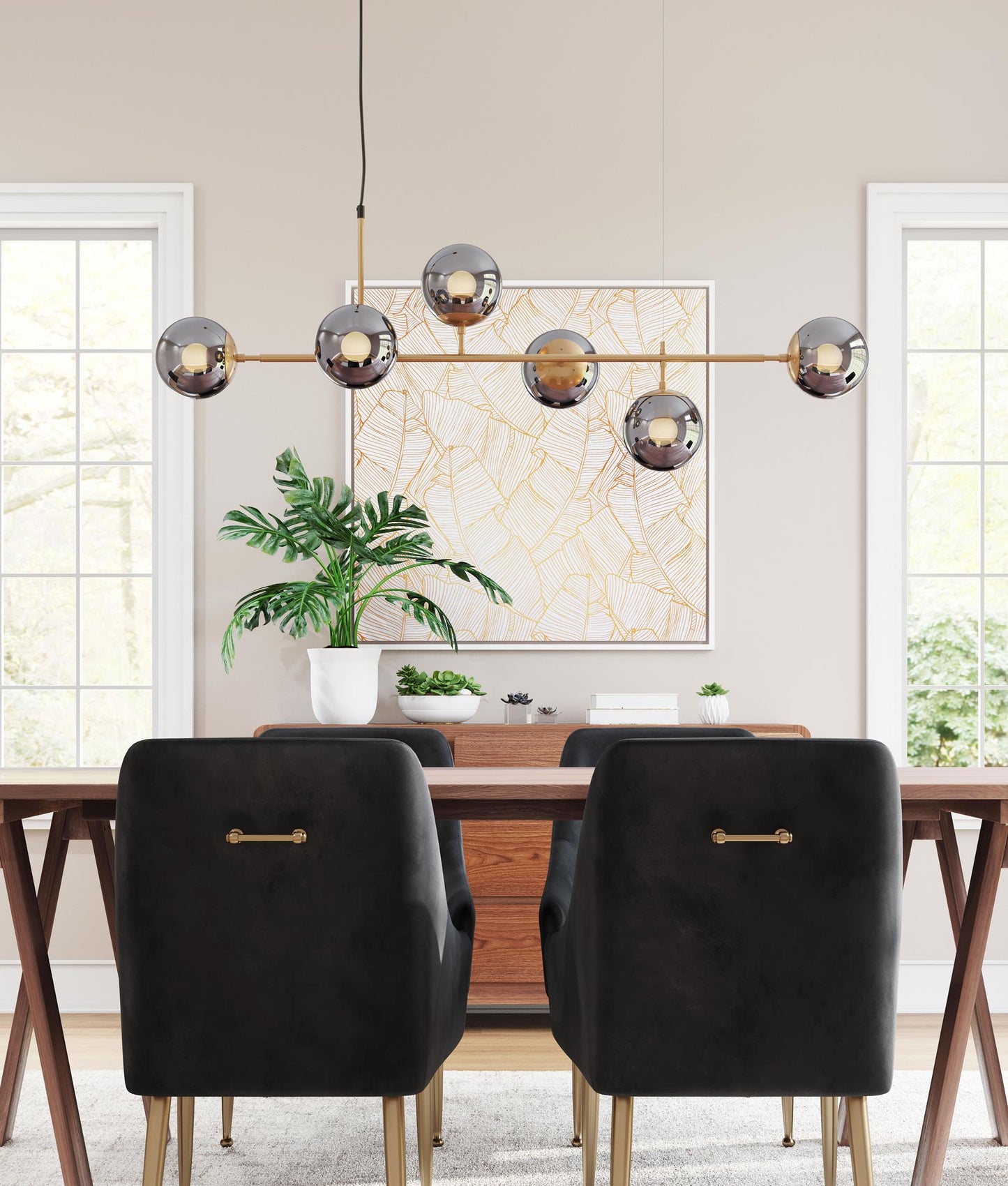 Modern meets deco in the Gisela Ceiling lamp, it has gold plated steel body with smoked glass shades. This lamp will elevate any space, living area, hotel lobby, or modern maximalist kitchen.