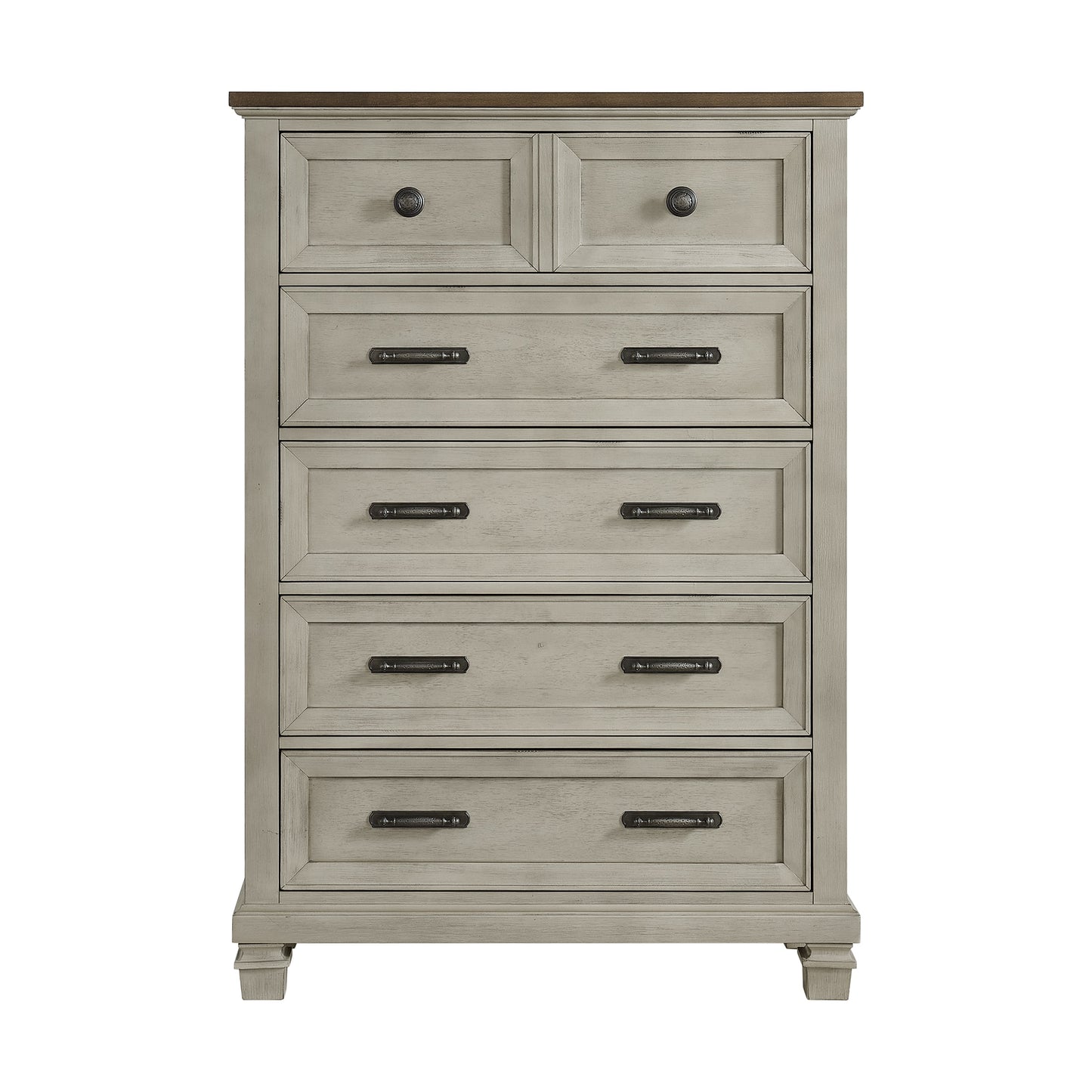The Graham Bedroom collection is beautifully designed furniture constructed of poplar wood with acacia veneer. Featuring a three-panel headboard and footboard, a nine drawer dresser and 2 types of antiqued nickel handles. This group boasts a stylish two-tone design in medium brown and washed stone that will complement any bedroom decor. The Graham bedroom offers both durability and style for a comfortable night's sleep.