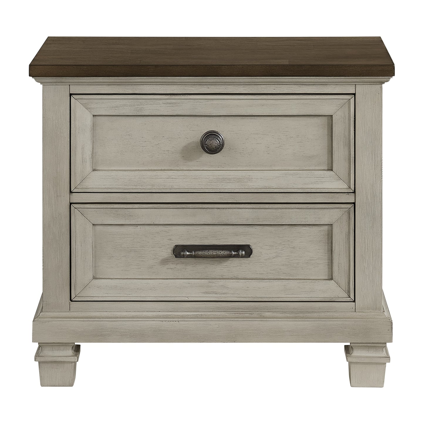 The Graham Bedroom collection is beautifully designed furniture constructed of poplar wood with acacia veneer. Featuring a three-panel headboard and footboard, a nine drawer dresser and 2 types of antiqued nickel handles. This group boasts a stylish two-tone design in medium brown and washed stone that will complement any bedroom decor. The Graham bedroom offers both durability and style for a comfortable night's sleep.