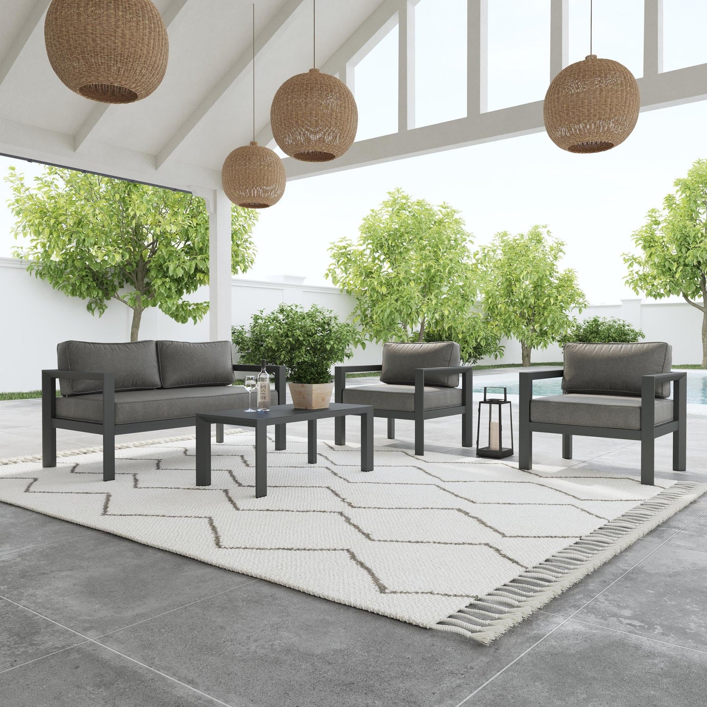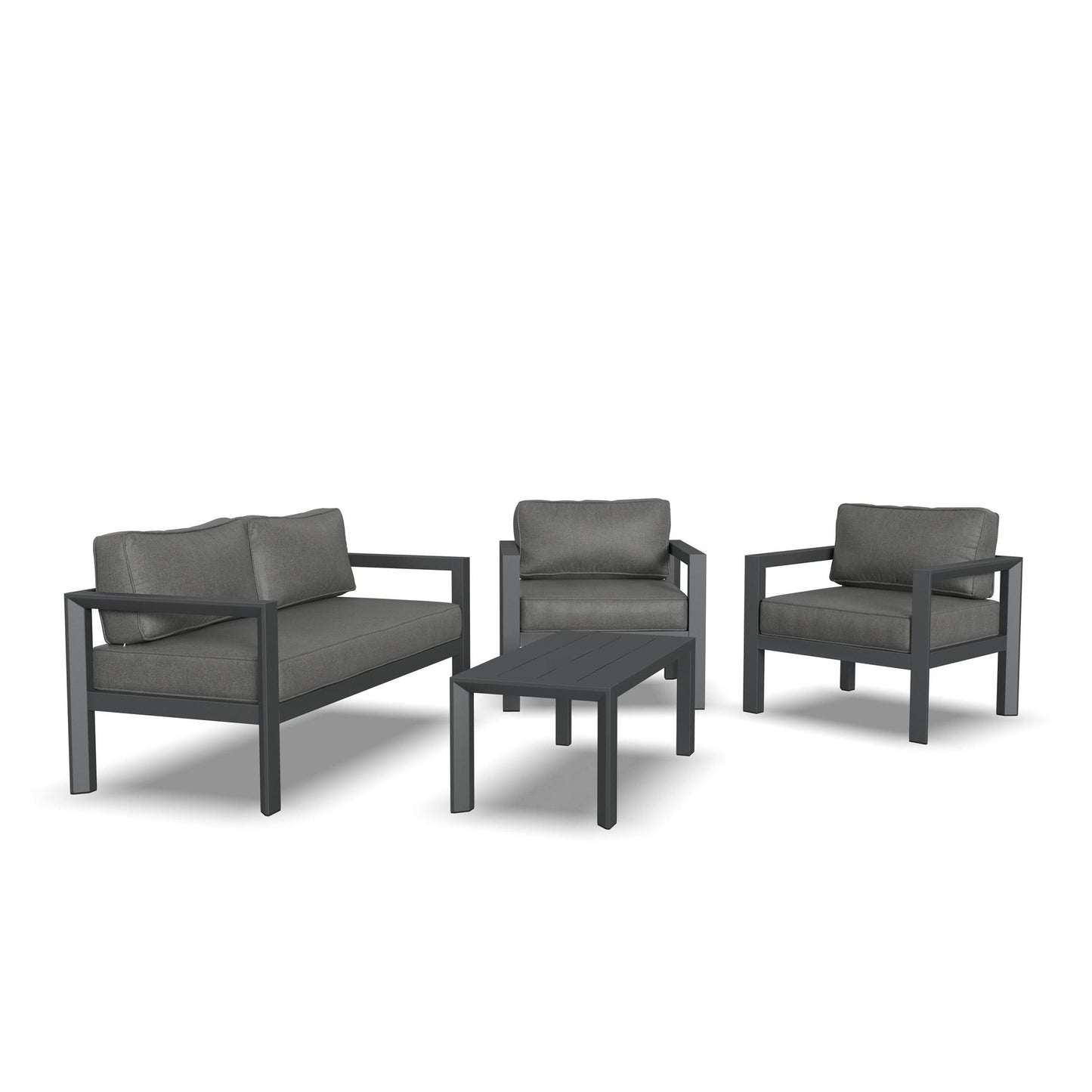 Grayton Outdoor Aluminum Loveseat with Lounge Chairs and Coffee Table