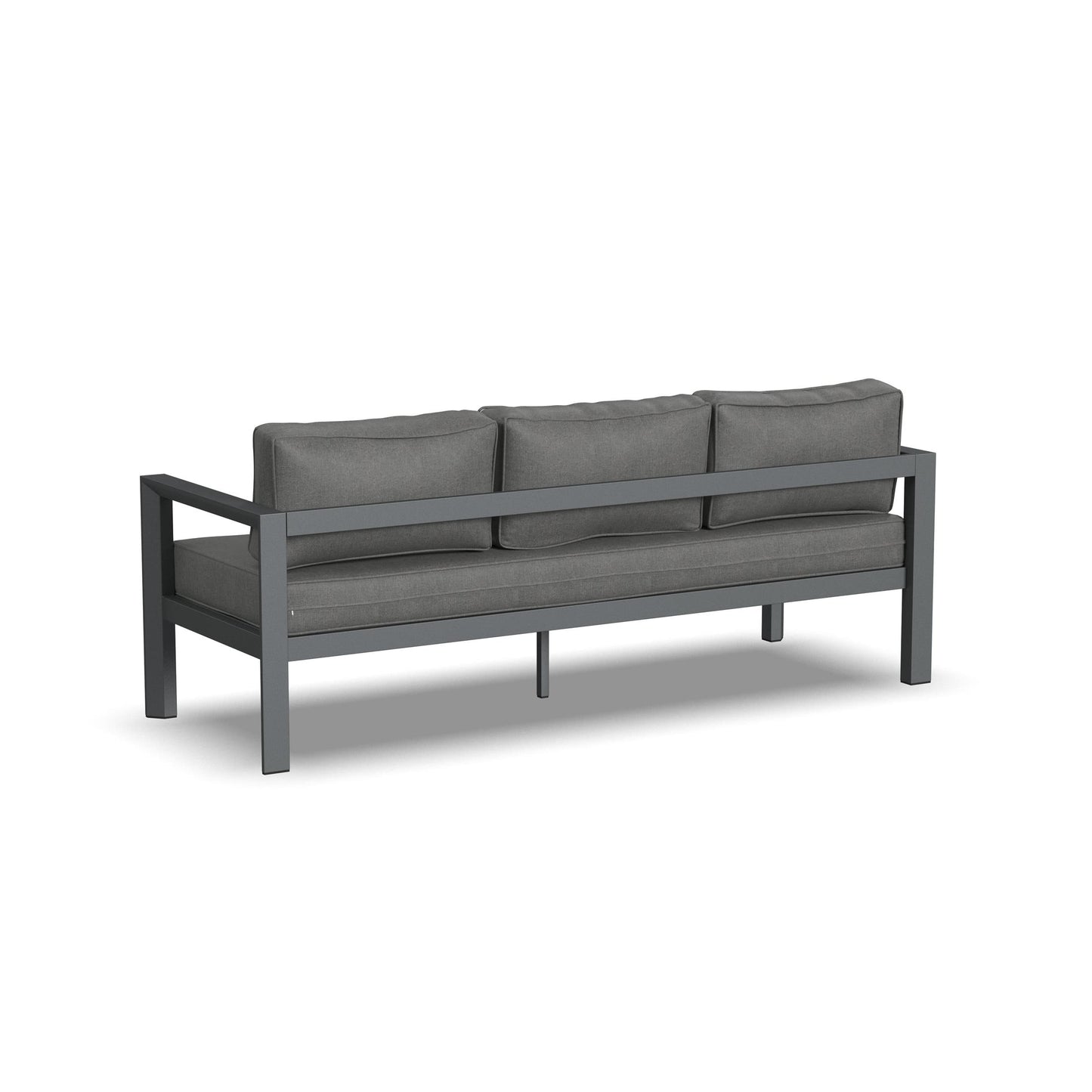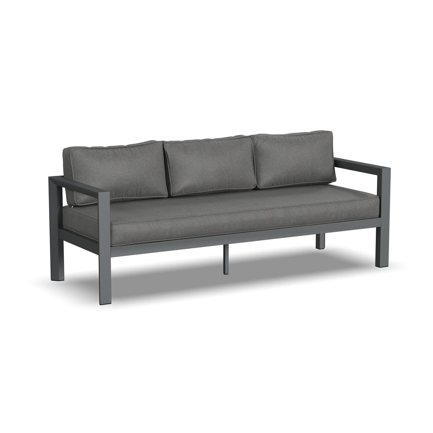 Outdoor spaces become as comfy and cozy as a living room when you add a Homestyles Grayton Outdoor Sofa. With thick seat and back cushions that you can sink into, you can make seating for three or stretch out comfortably with a good book (or, let's be honest, your phone). The recycled aluminum frame with stainless steel hardware and weather-resistant cushions make this a sofa for all seasons, year after year.