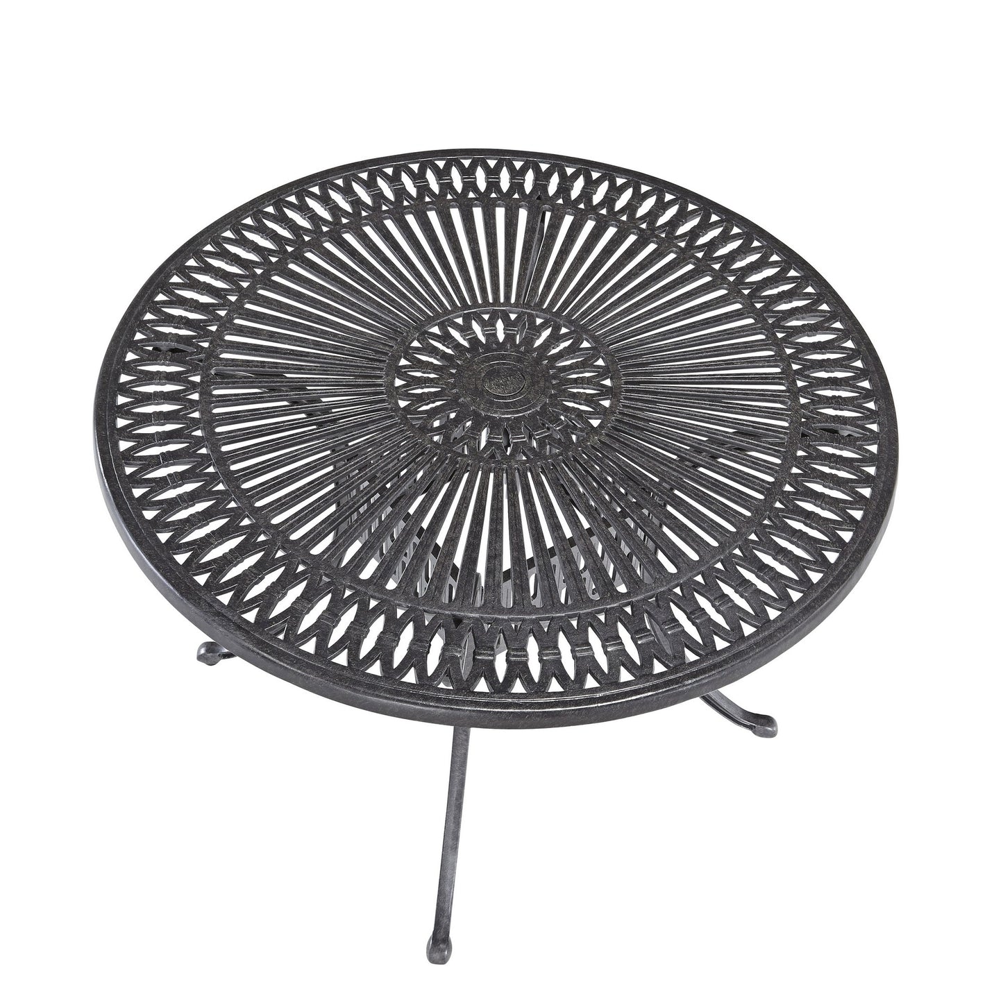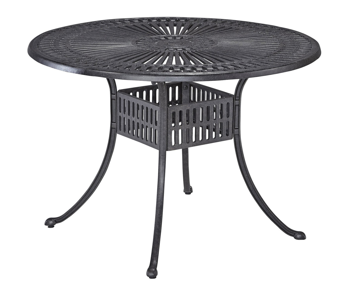 Create paradise in your own backyard. This Grenada Dining Table by homestyles has a cast aluminum frame and is UV-resistant, with a hand-applied, powder-coated finish that's sealed with a clear coat. The maintenance-free table seats four comfortably. There is an umbrella hole, with a cap when not in use. Nylon glides keep the table firmly in place and the hardware is rust-proof stainless steel. Finish and measurements may vary.