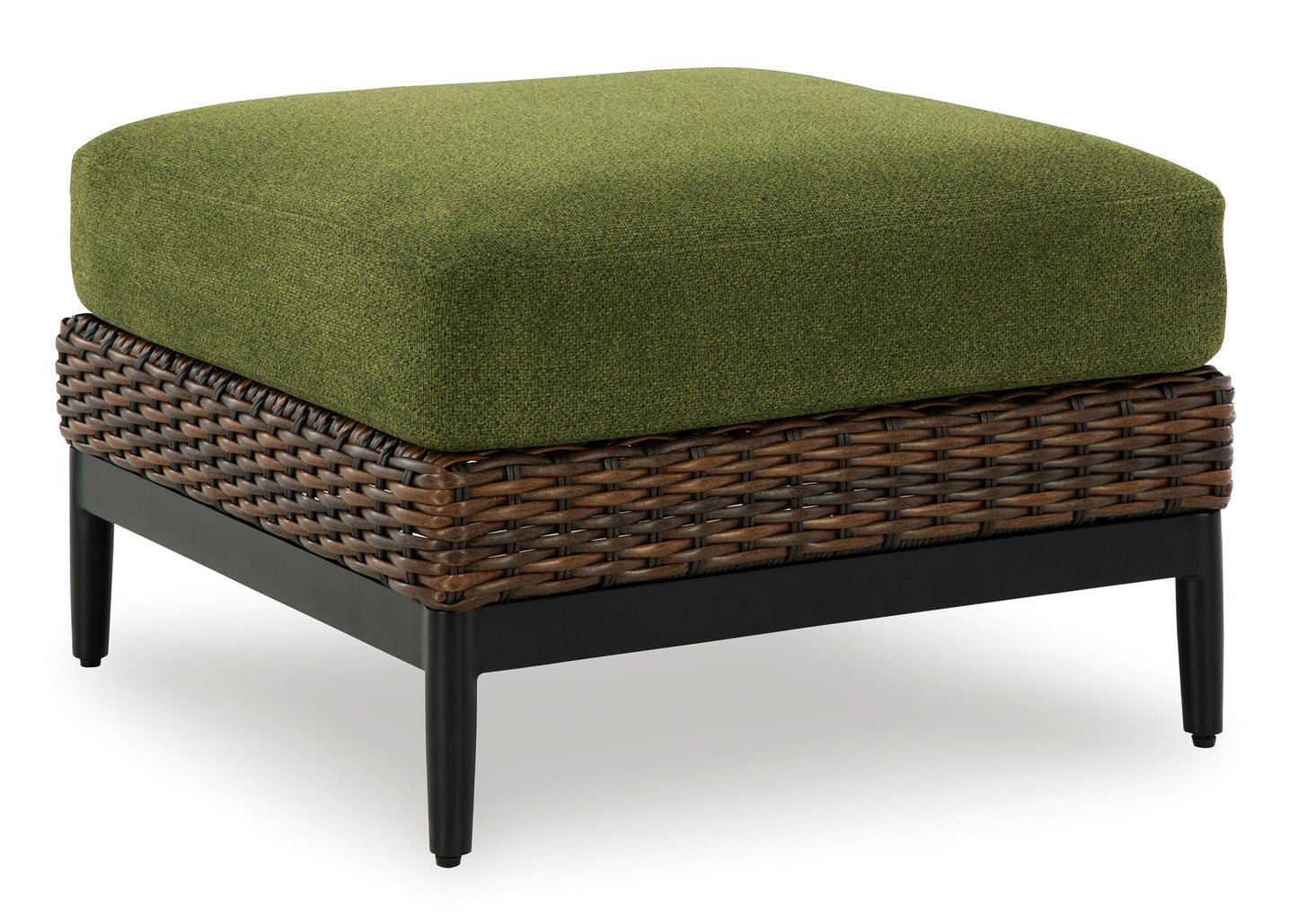 This outdoor ottoman recalls the aesthetics of nature to bring an inviting, high-style feel to your patio or lanai. Its Nuvella+™ performance fabric is made with enhanced UV resistance, so the chic green hue stays brighter for longer. Worried about the weather? Don't sweat it—the durable resin wicker withstands the elements from season to season.