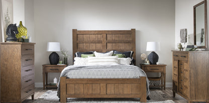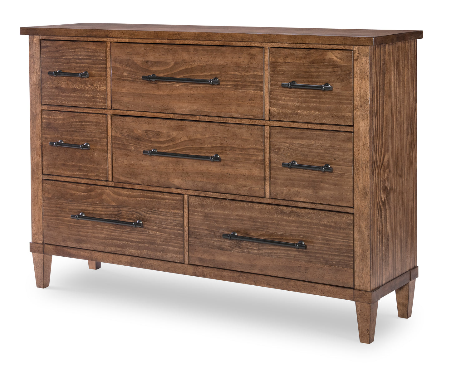 Modern redefines farmhouse style with an eclectic two-toned whole home collection. Featuring mixed media and some Craftsman design elements, the collection is constructed of Hardwood Solids and Pine Veneers. The main finish is the clean and refined Vintage Pine, accented by Ironwood black bases and hardware. Cabinet fronts in the eclectic farmhouse design feature metal lattice grills on the doors.