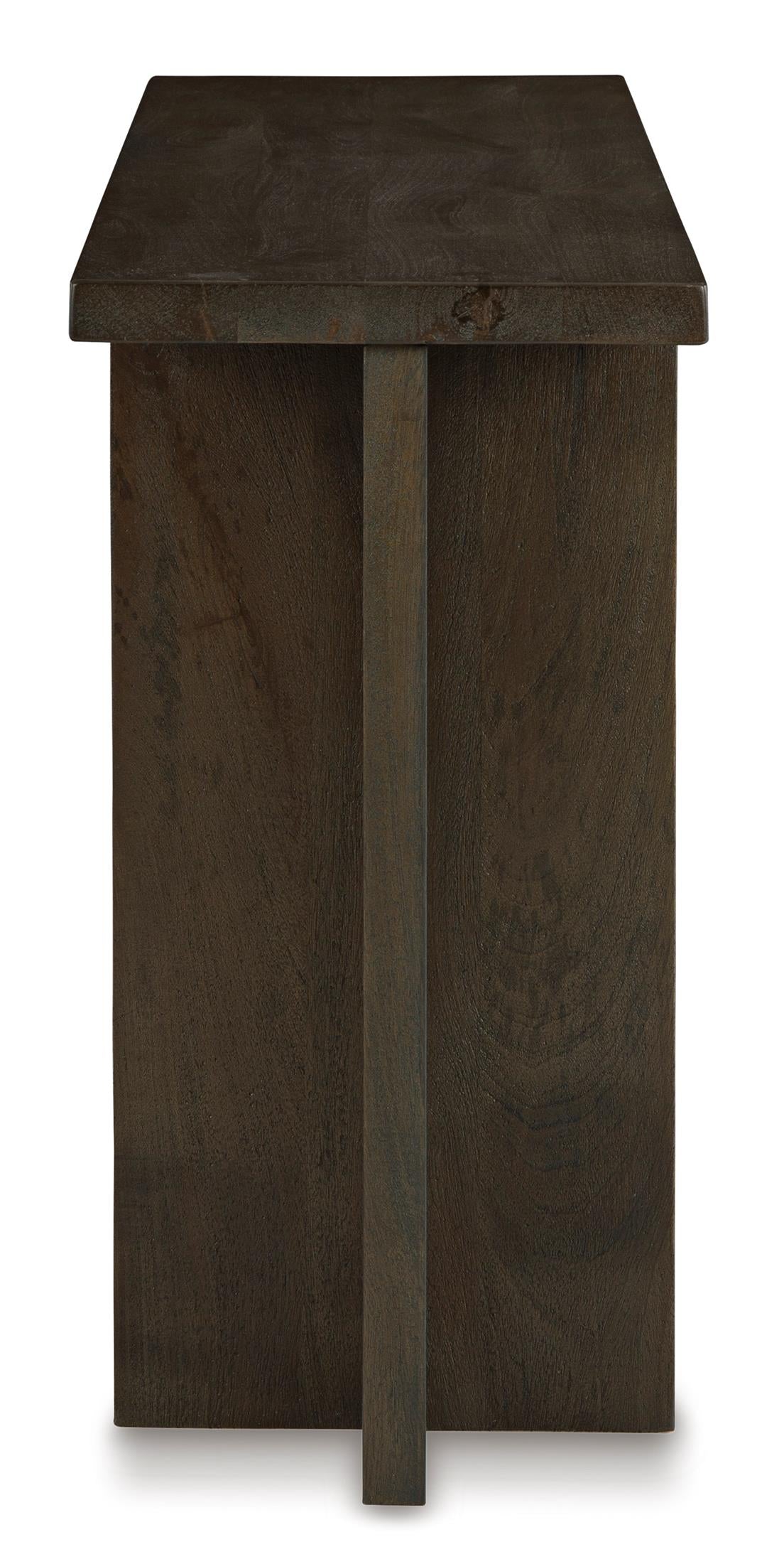 The clean-cut profile of this console table works equally well in casual and contemporary settings. Made of solid wood, its lightly sandblasted effect lends a trend-right vibe, while the legs add dimensional flair. Dress up this piece with decor on the shelf to suit your style needs.