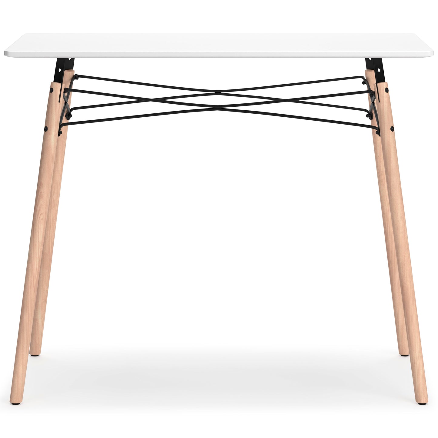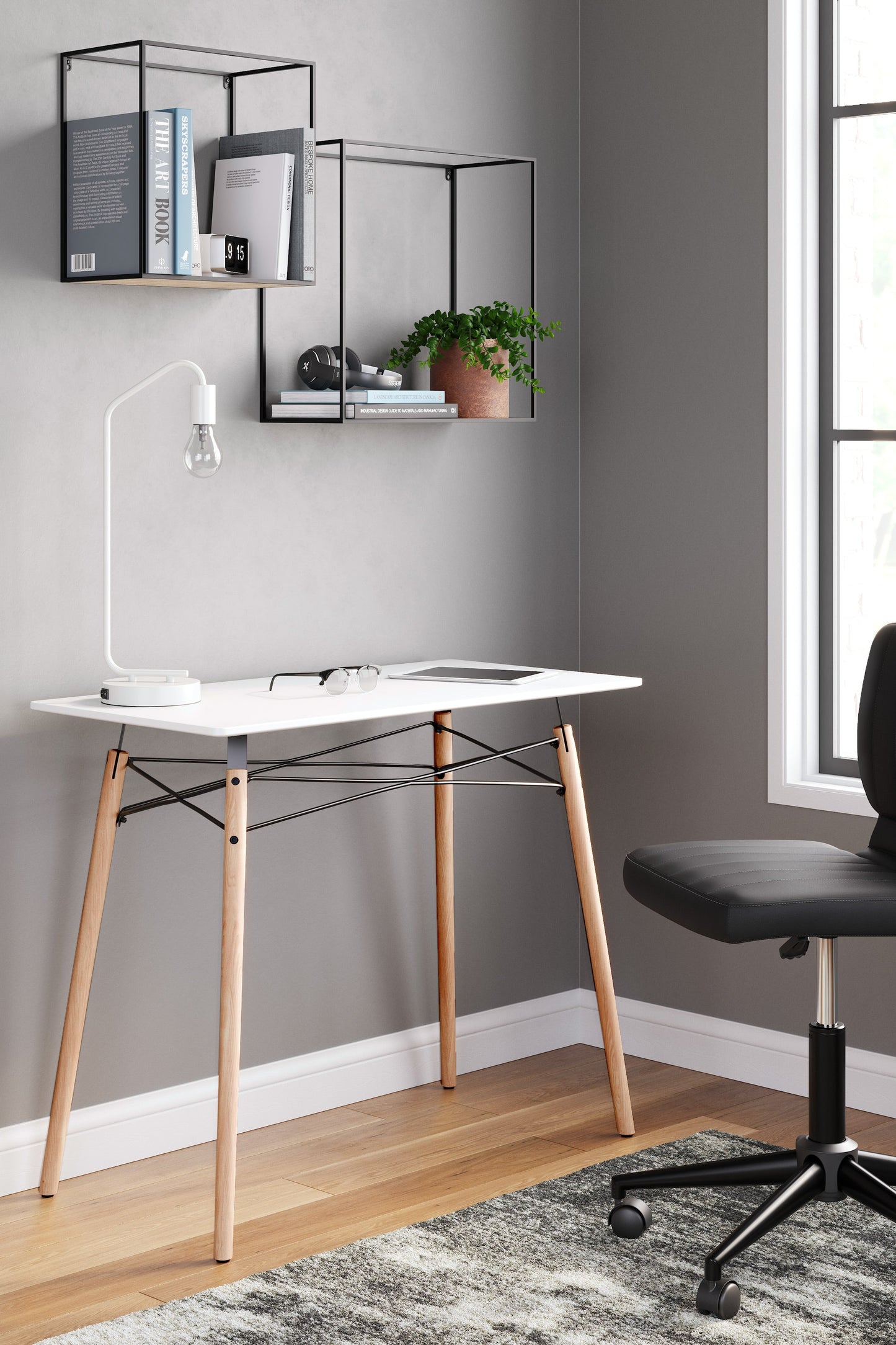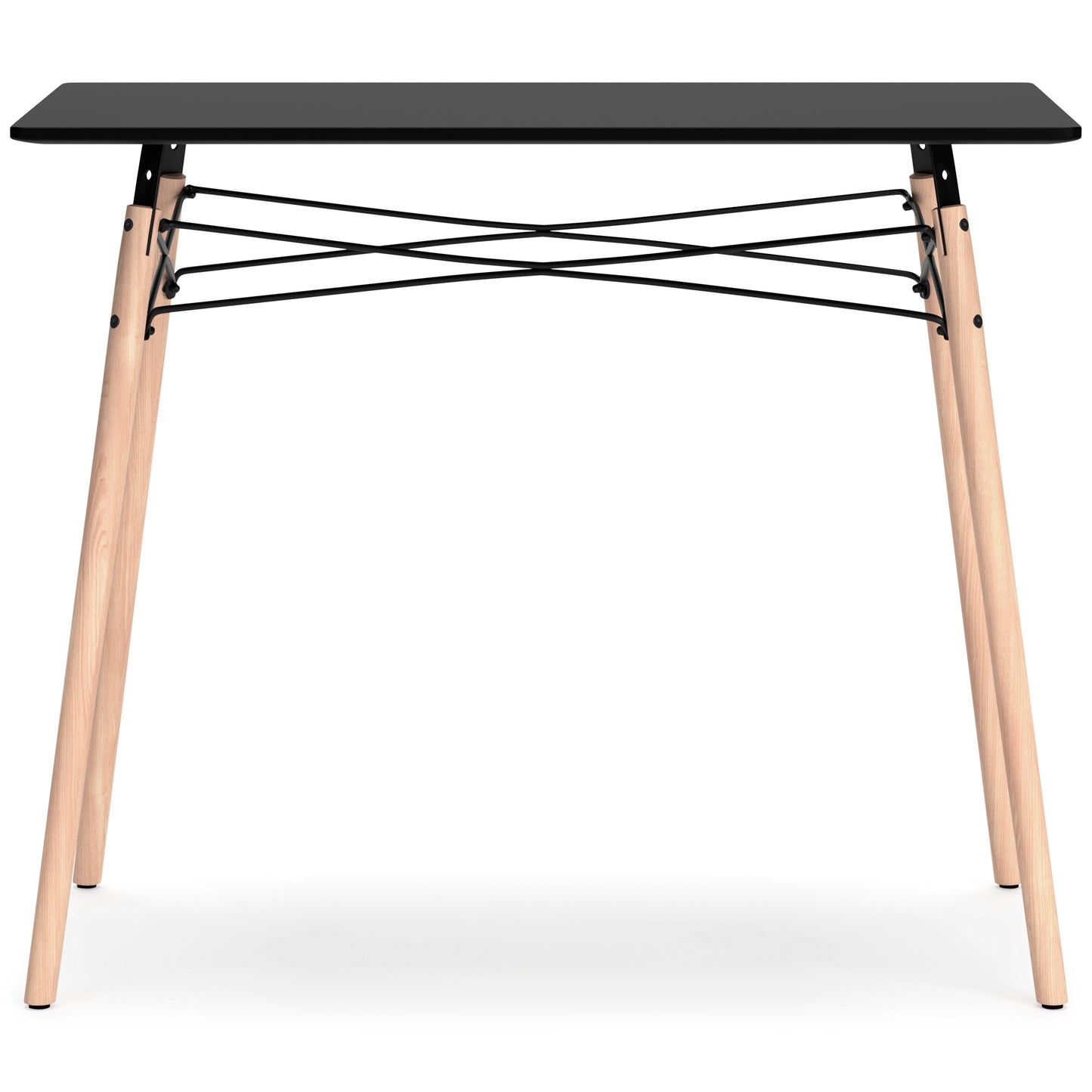 A contemporary take on a classic look, this home office desk adds a touch of artistic flair to your at-home work experience. It's designed with small space living in mind, and is perfect for small apartments and dorms. With its painted black top, black metal framework and wood legs, the rectangular desk is intricately eye-catching, allowing you to work in style.