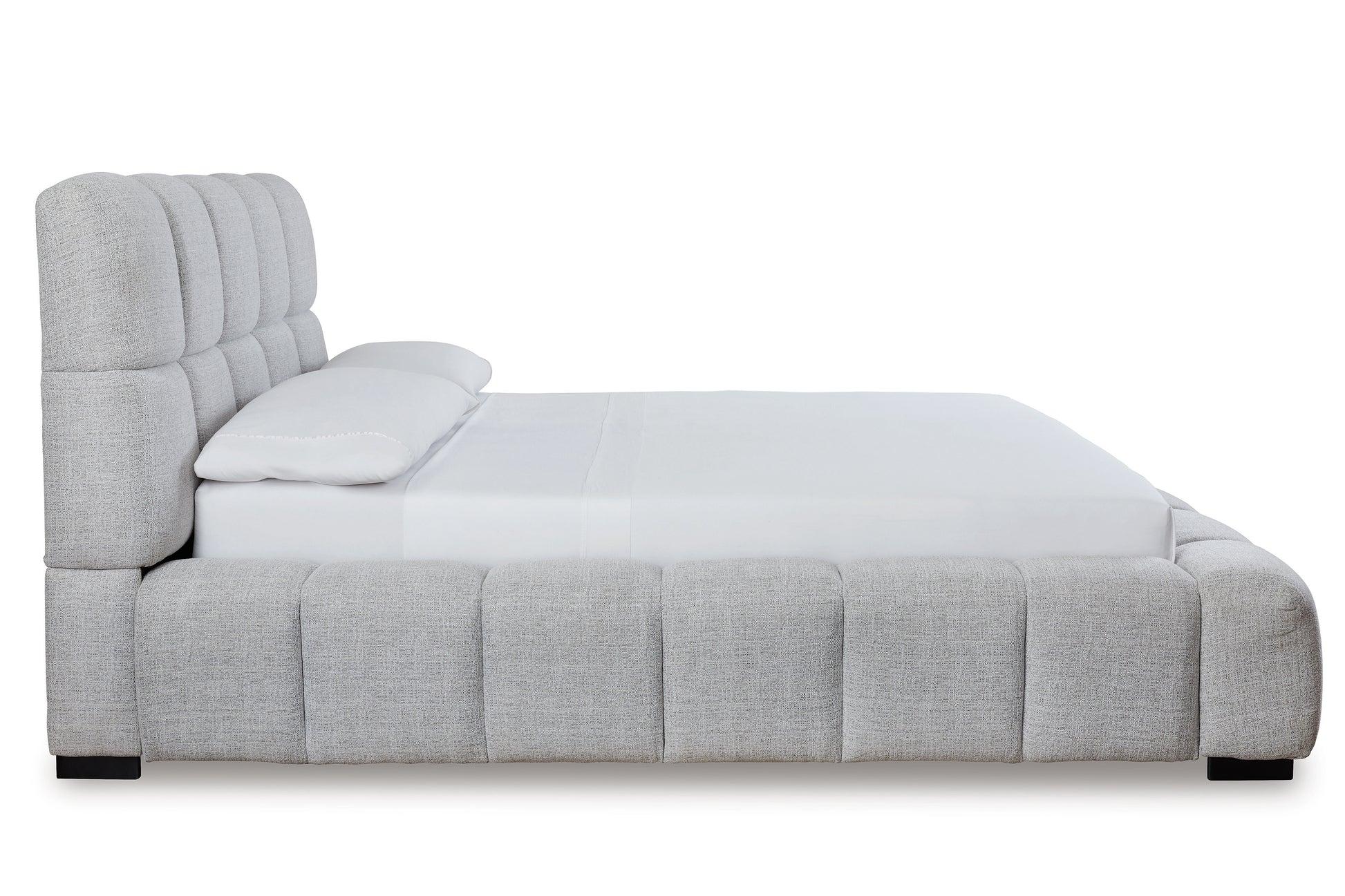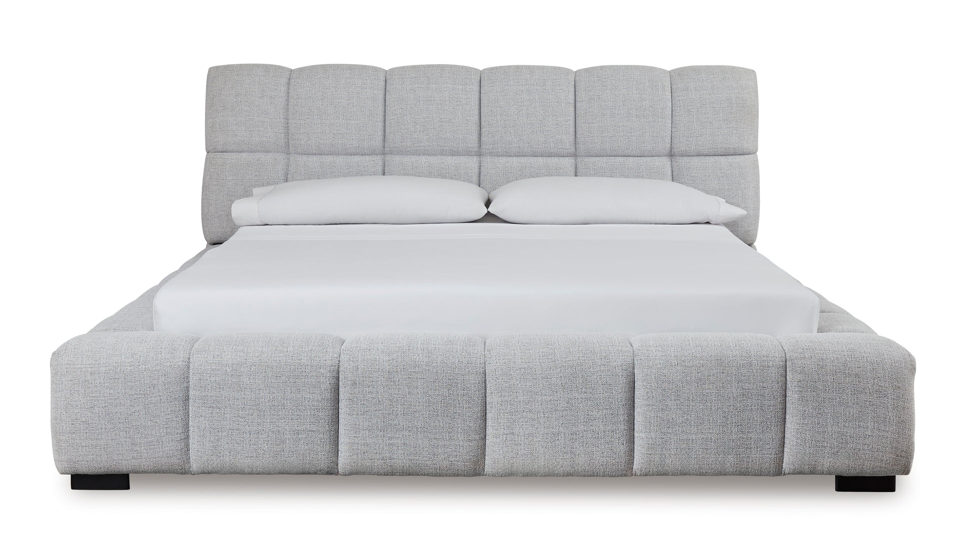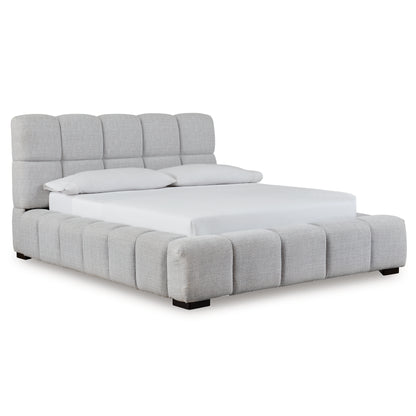 A divine merger of casual and contemporary design, this queen upholstered bed is the upgrade you've been dreaming of. Plush, deep pillowed tufting creates an impressive silhouette that's just as comfortable as it is stylish. And the textured light gray Next-Gen Nuvella™ performance fabric is soft and easy to clean. Now there's a bed with staying power.