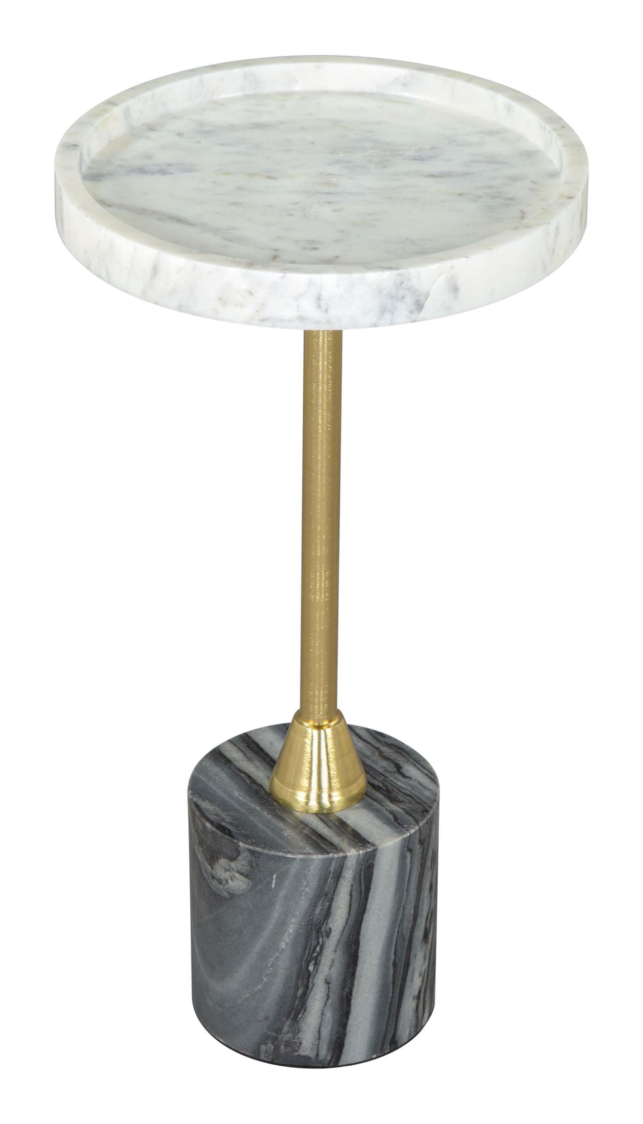 The Johan Side Table has a steel frame with a marble top and base. It is a modern glam piece for any space, residential or hospitality.