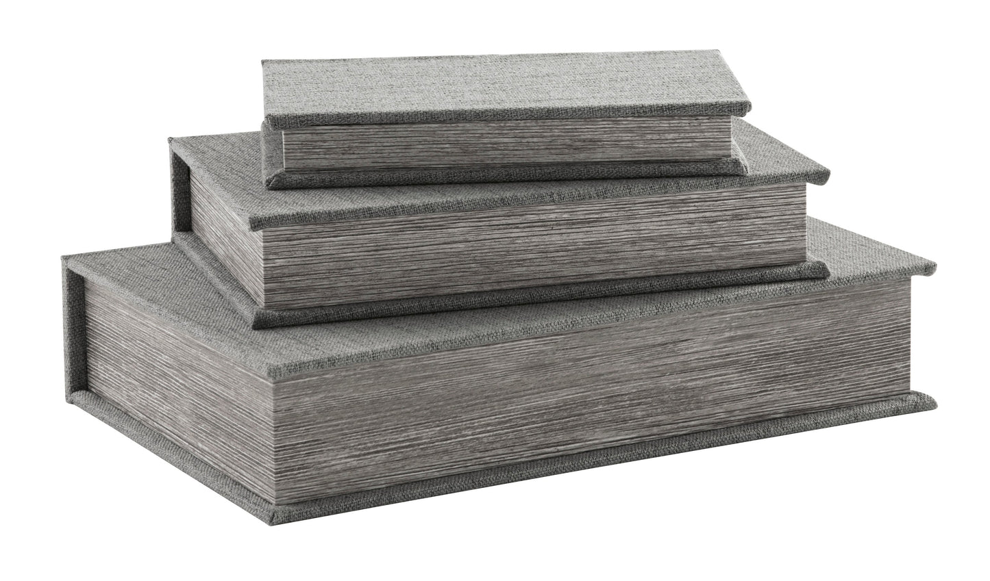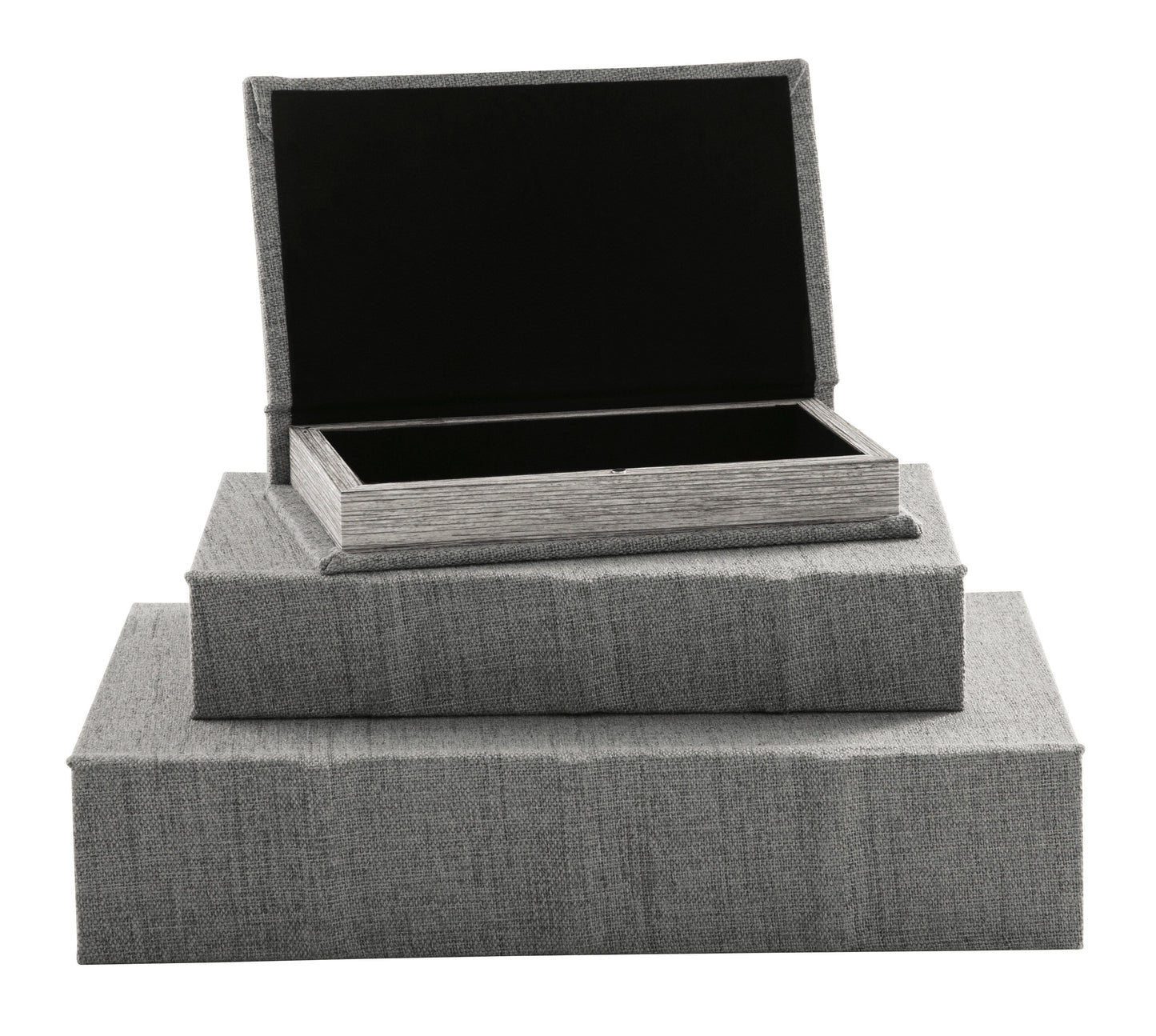 This set of three keepsake boxes makes storage so quietly understated. The gray cover is complemented inside with a black velvet lining. The perfect place for your dearest keepsakes, this set adds a touch of casual elegance to your decor.