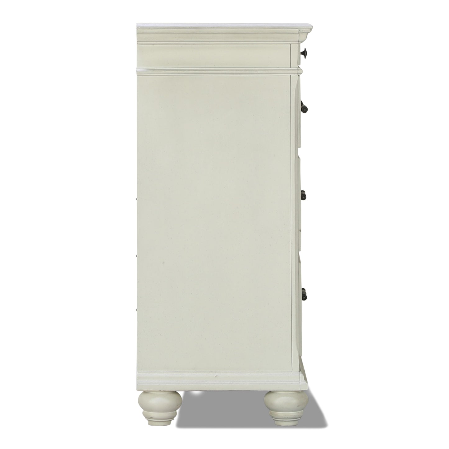 Give your retreat vintage charm and valuable drawer storage with this dresser. In a beautifully distressed whitewash finish, you'll love putting it all away in casual style. Seven full-sized drawers and two accessory top drawers will easily accommodate your needs. Generously scaled moulding from top to bottom, along with bun feet and drawer handles with a transitional aesthetic, give this dresser character—evoking the feel of a quaint cottage escape.