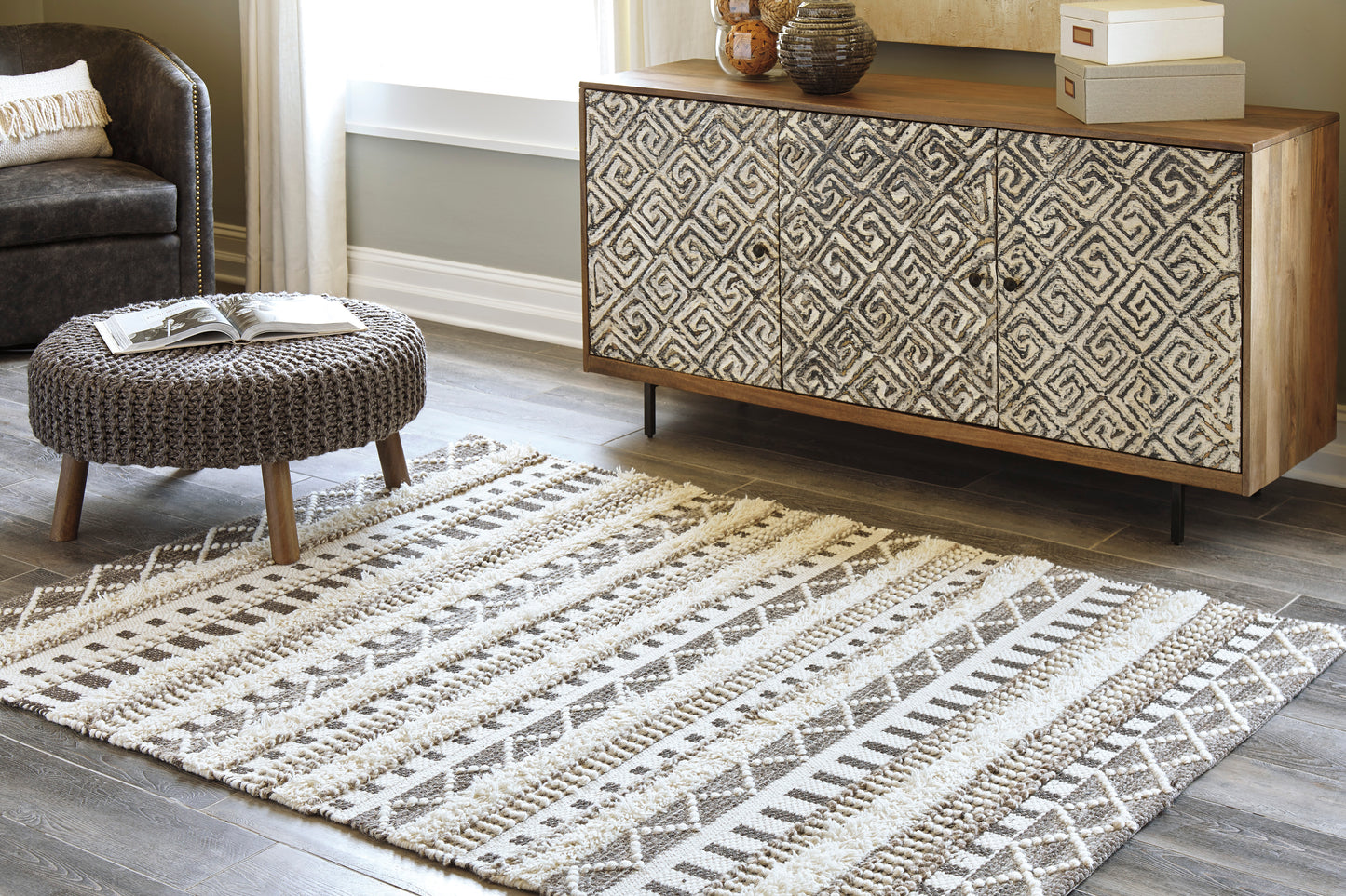 Stay on trend with tribal chic. This area rug is just neutral enough to work with your decor and just cool enough to keep your space hip. Decorate again and again on top of this dynamic floor covering; the ivory, brown and natural geometric design work so well with everything.