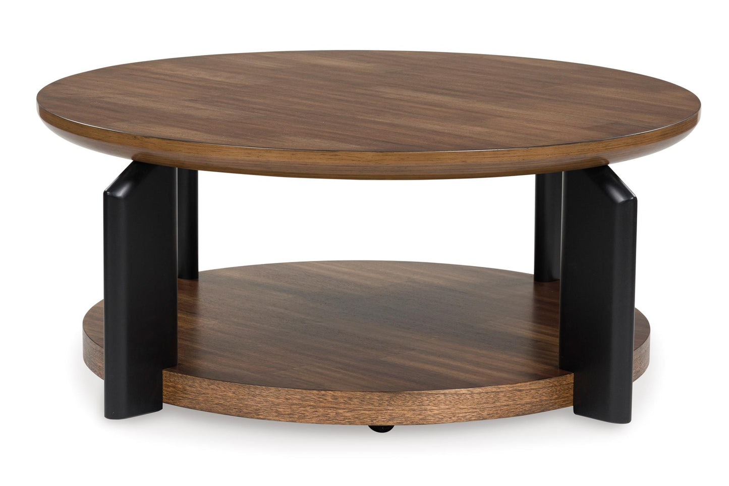 Experience the captivating allure of this coffee table, an effortless blend of casual and refined aesthetics. Its two-tone finish combines satin black with a rich brown wood tone for a modern, relaxed vibe that you'll love. Perfectly suited for your contemporary home, it offers open storage to accommodate your favorite books and accessories. Your search for simple, chic design ends here.