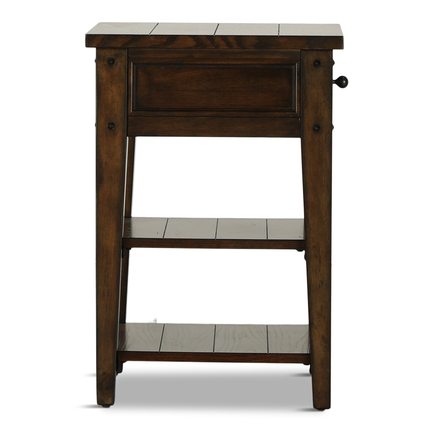 Shabby chic with a hint of down-home country. This chairside end table with a rustic brown finish is all the talk of today’s design world. One drawer offers ample storage space, while two fixed shelves add a lovely twist. The look is further beautified with a framed and plank-effect tabletop for a richly crafted masterpiece made for years of satisfaction.