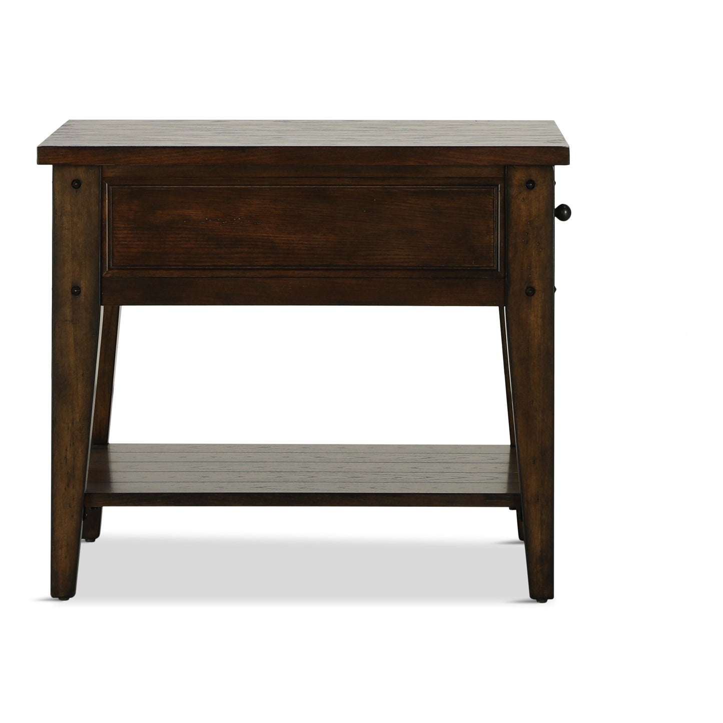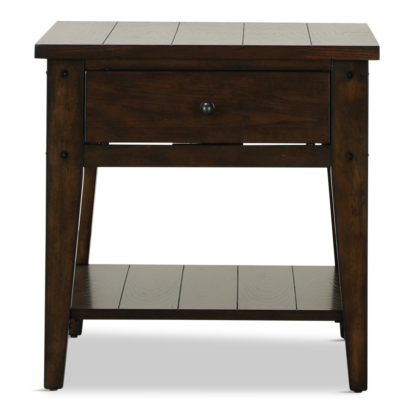 Shabby chic with a hint of down-home country. This end table with a rustic brown finish is all the talk of today’s design world. One drawer offers ample storage space, while a fixed shelf adds a lovely twist. The look is further beautified with a framed and plank-effect tabletop for a richly crafted masterpiece made for years of satisfaction.