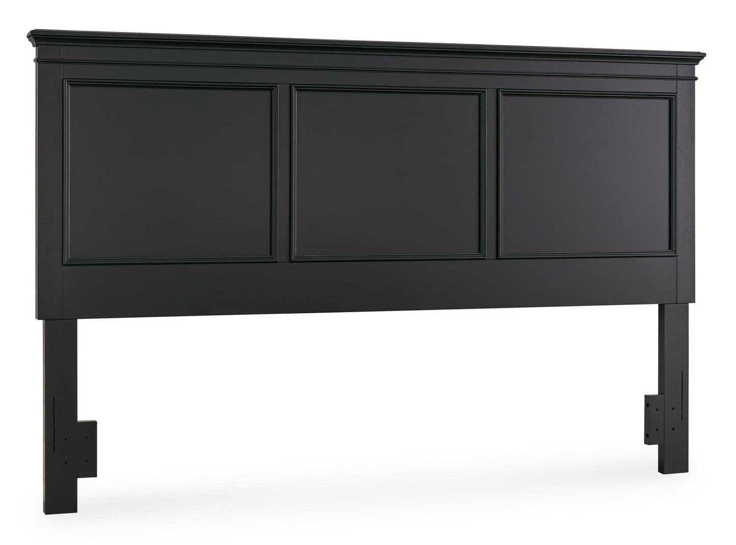 This panel headboard is made with hardwood solids, birch veneer and MDF substrate. Pairs with other items in the series to make a bed kit.