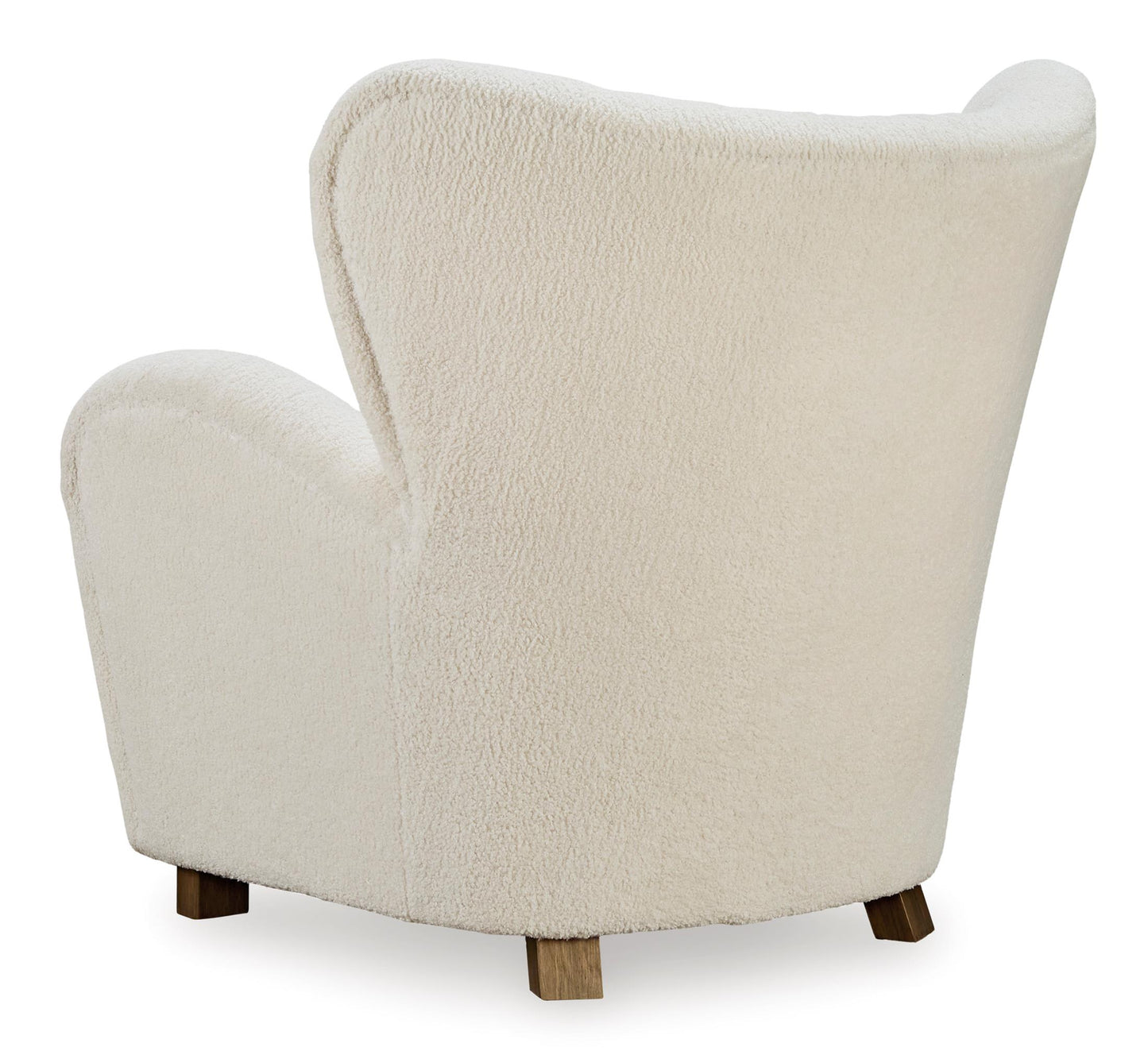 High style meets relaxation in this accent chair. Cozy faux shearling fabric keeps the look contemporary without compromising on comfort. A tufted wingback design and dramatic slope arms add high-fashion flair. It's the perfect place to curl up and enjoy your favorite book or podcast.