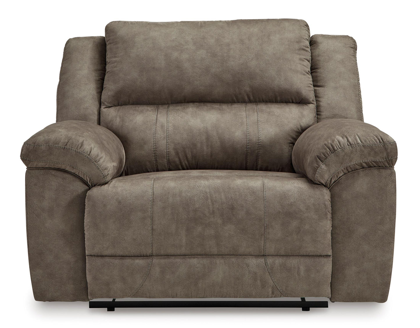 Is being too comfortable even possible? It’s worth finding out in this oversized recliner. Wrapped in the plushest of neutral faux leather upholstery, it's perfectly cushioned in all the right places. We love the recliner's super wide seating with plenty of room for two. And its effortless reclining elevates your comfort level into the stratosphere.