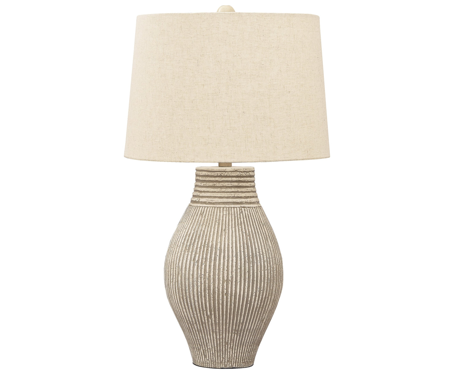 With its textural elements and neutral hues, this table lamp is a natural fit for so many spaces. Paper composite base with organic texture feels wonderfully at home.
