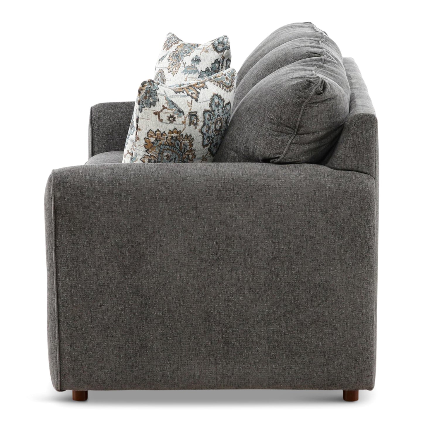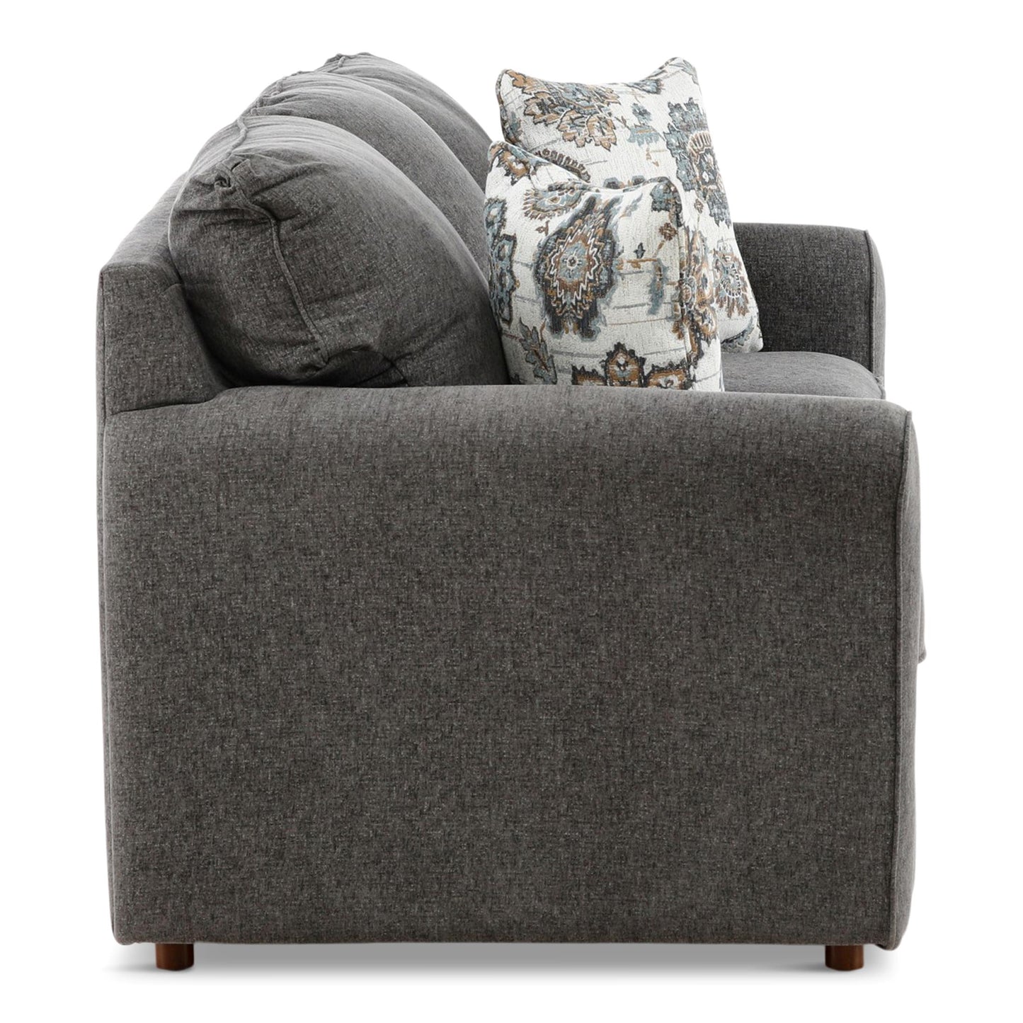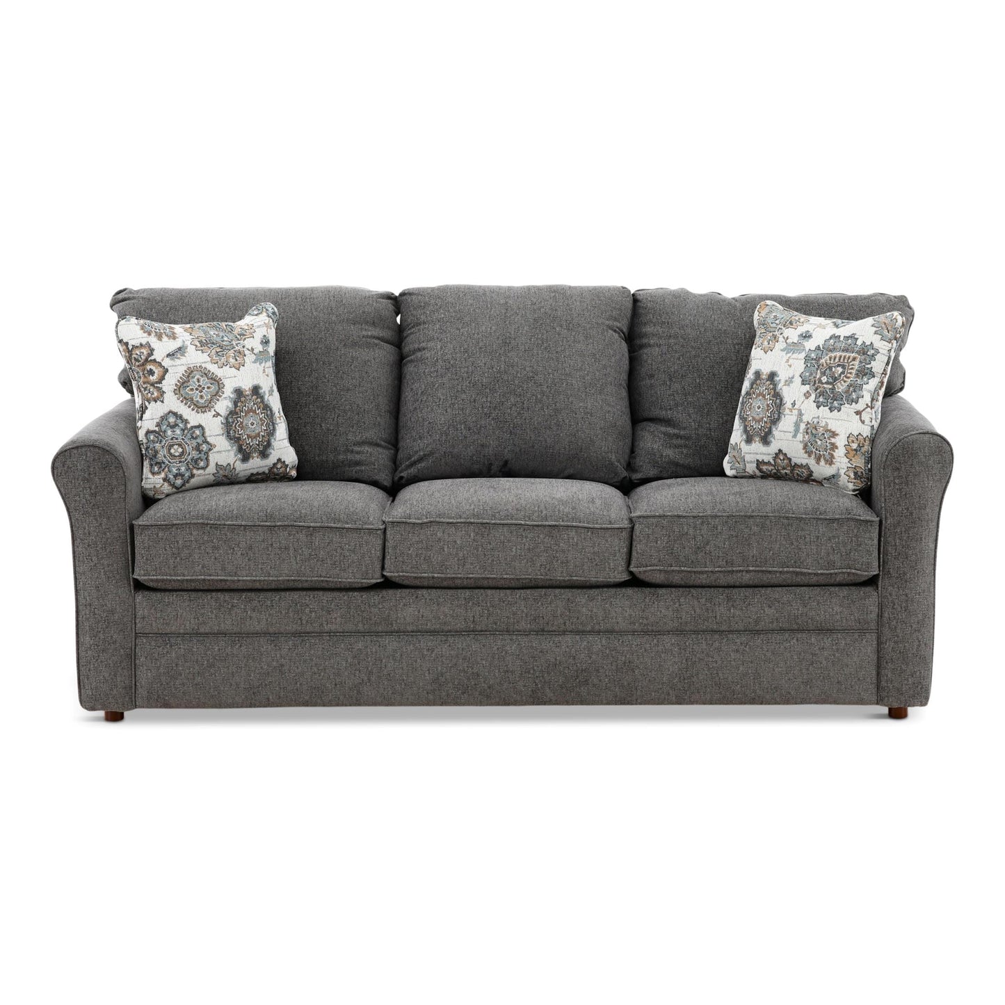 Turn any room into a stylish and functional guest room with the Leah queen sleeper sofa. Its sleek profile is perfect for smaller spaces, yet it opens up to become a super comfortable Queen bed, complete with a Supreme ComfortTM quilted innerspring mattress measuring 5.5” thick. By day, this sleeper is a true beauty too, with curving rolled arms, welt trim and patented ComfortCore® cushions that provide optimum support for a long or short sit. Includes two accent pillows.