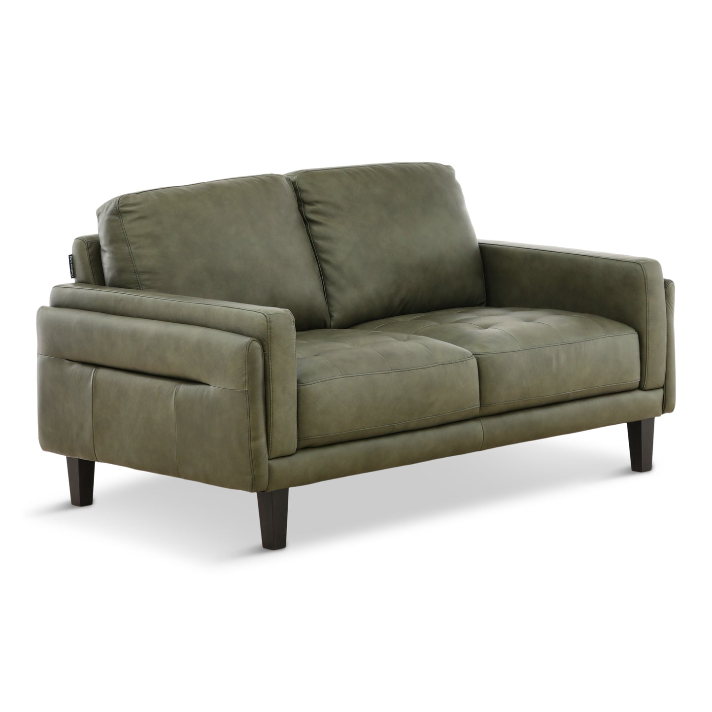 Transitional style loveseat with a beautiful double track arm, tufted seats with soft and supple top grain Italian leather. This loveseat is a great focal point of any room.