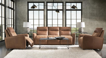 The most comfortable and stylish collection yet. The Sorrento features all top grain, full aniline leather in a cognac color. Micro flanged details accent the sleek transitional styling with a single tuft line at the power headrest.