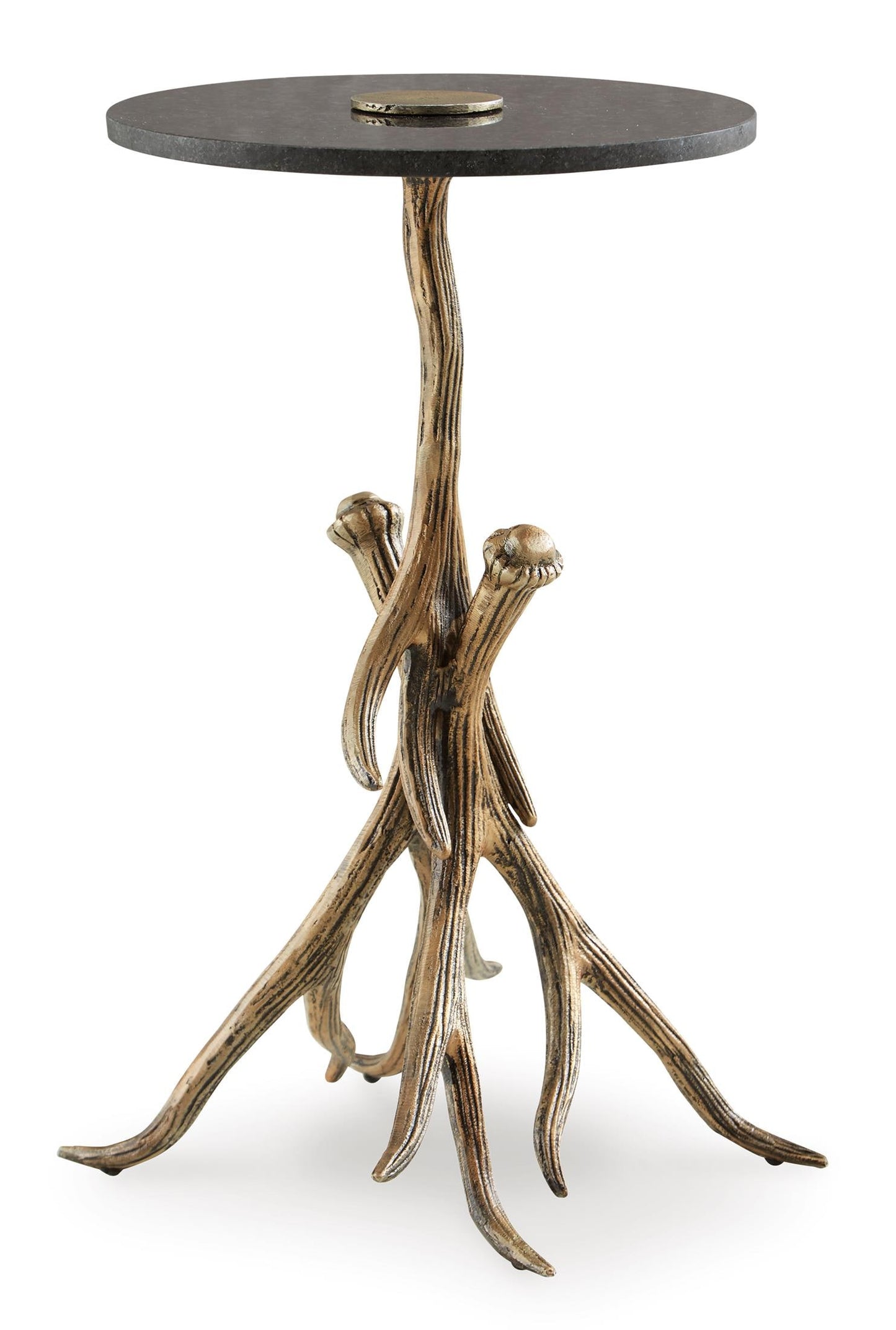 Elevate your living space with the captivating presence of this accent table. Rustic meets contemporary in the nature-inspired statement piece, which effortlessly delivers unique character. Faux antlers and a black marble top add a touch of elegance and character that's sure to make a lasting impression.