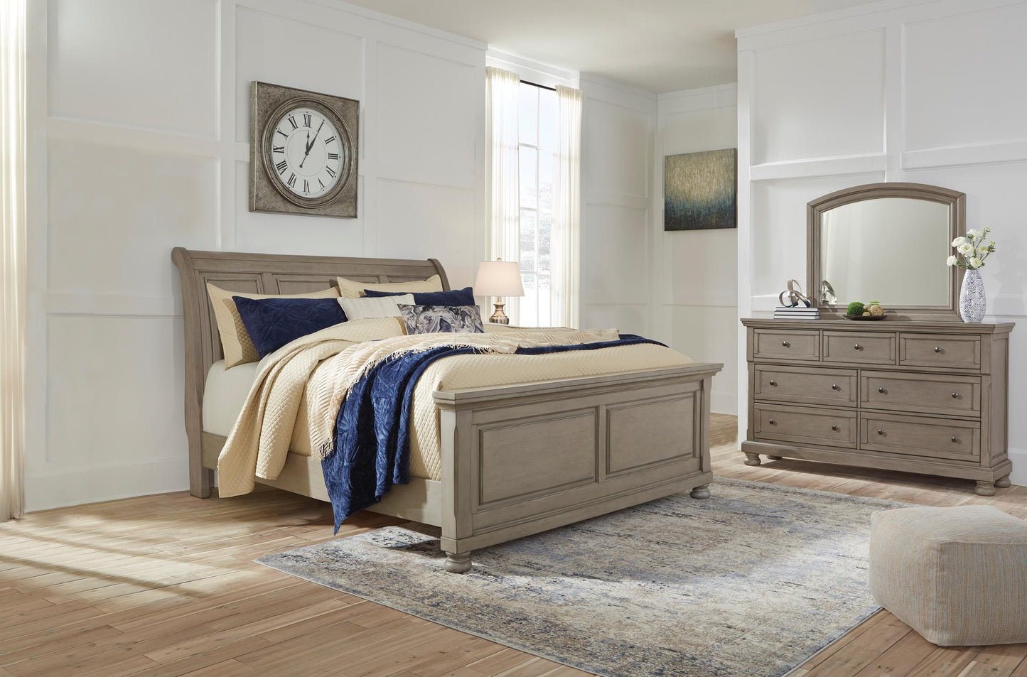 Satisfying your taste for tradition, the Lettner king sleigh bed sports serene sophistication. Forever classic design details like inset panels and bun feet are so easy to love. A burnished light gray finish elevates the look with modern sensibility, so you can sleep in style.