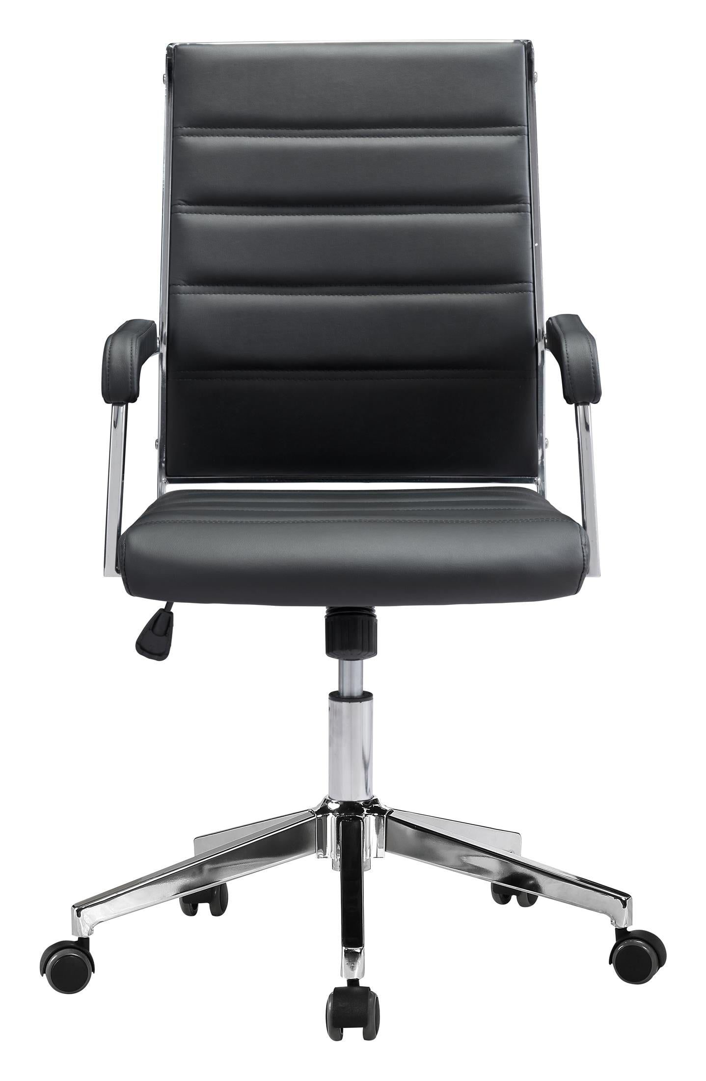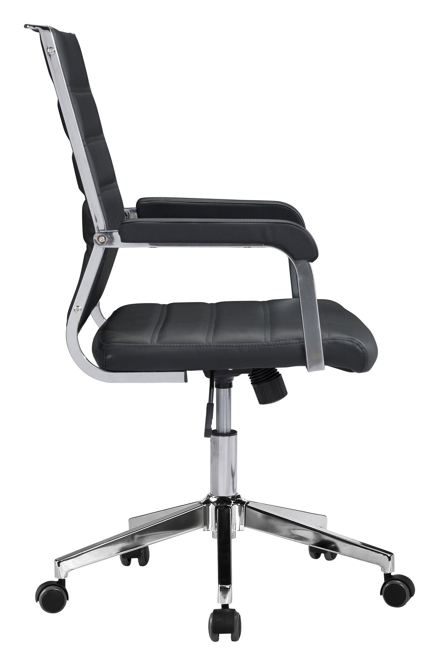 The Liderato Office Chair has mid century modern urban lines and looks great in any space. With a heavy duty vinyl covering and a sturdy steel frame, this chair fits in any dining room, home office, or even as a bedroom accent chair. The frame and base are chrome plated for a sleek modern look.