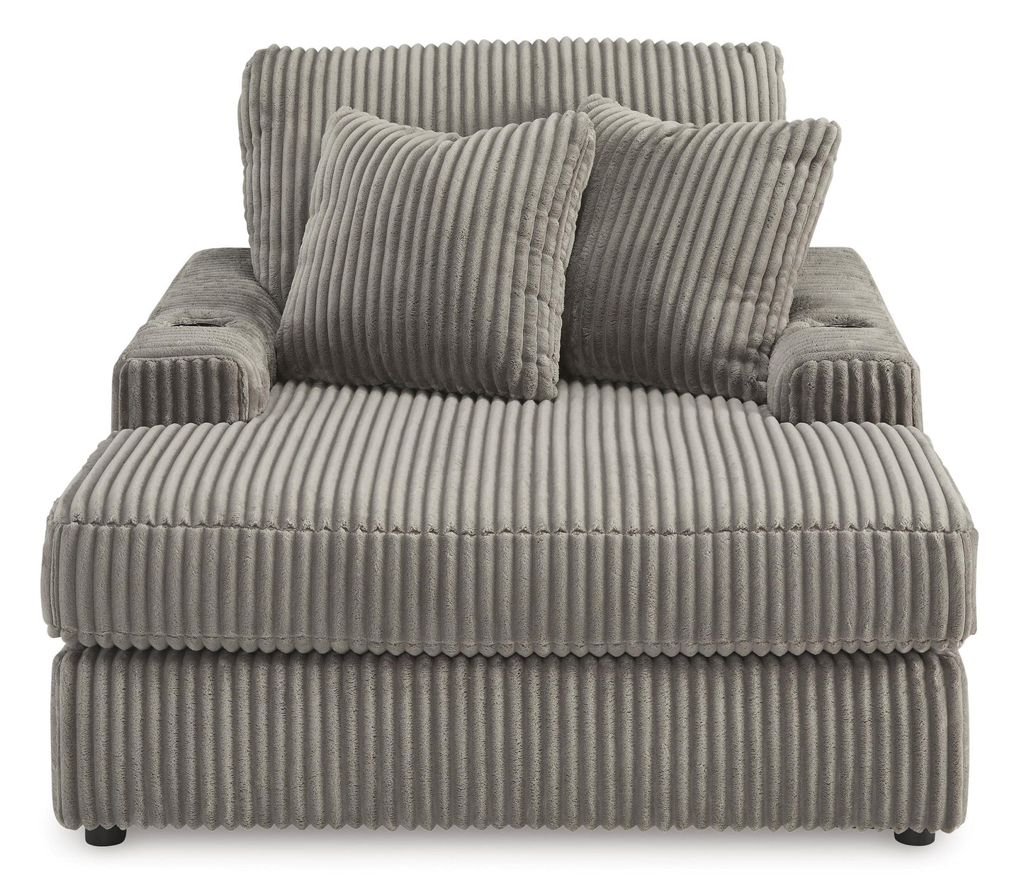 Plush and posh. Showcase your eye for on-trend texture with the statement-making cord upholstery of this chaise. Its stunningly soft fabric entices in an ivory hue, complementing contemporary color palettes. Sink into the cushions and plan to stay a while—this cozy oversized chaise highlights your high-end approach to comfort and style.