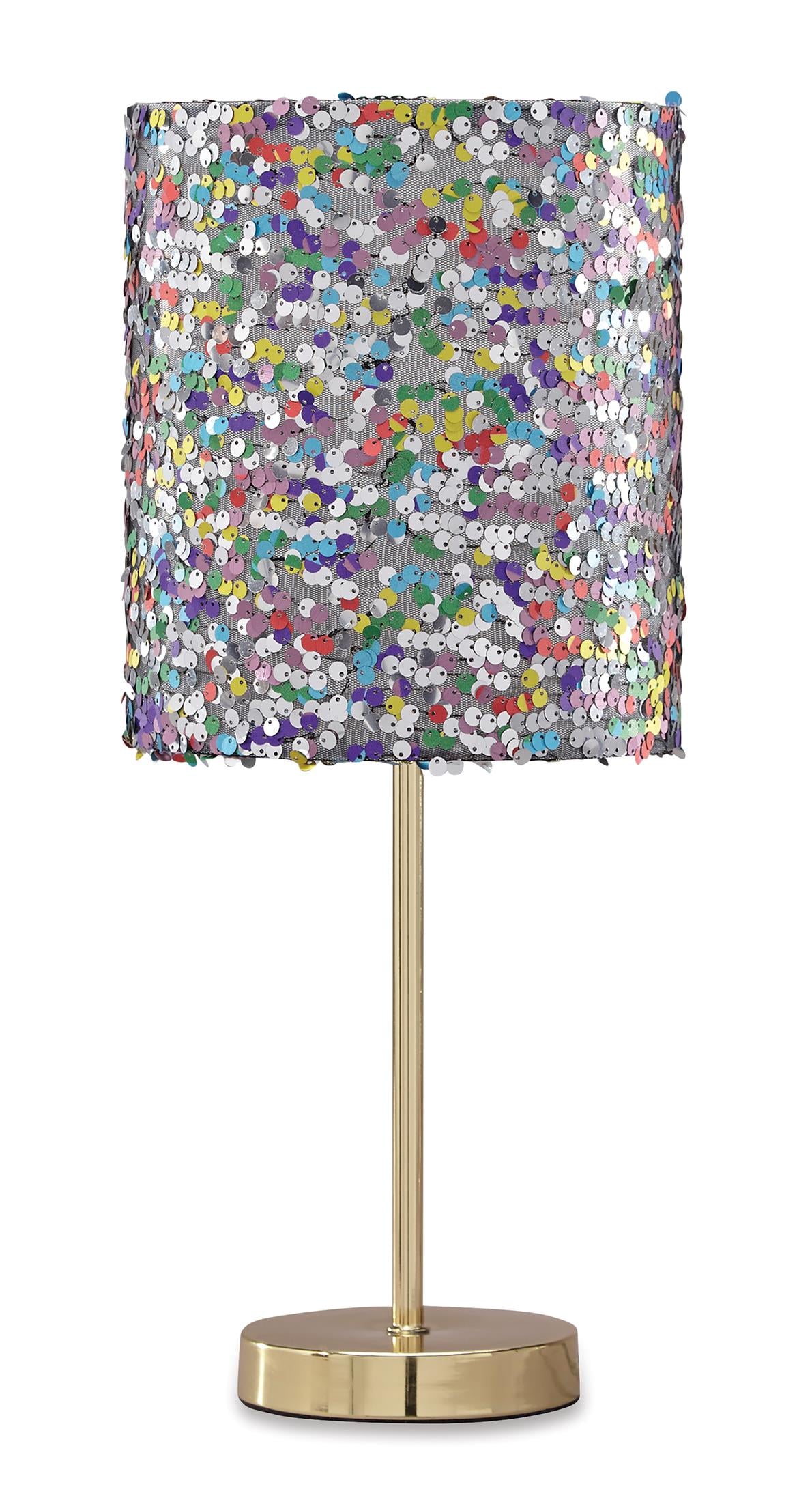 Is your little one all about the glam factor? If so, she’ll love this table lamp. Multicolored sequined drum shade lights up her room in style. Goldtone metal base is a classy touch to this glitzy design.