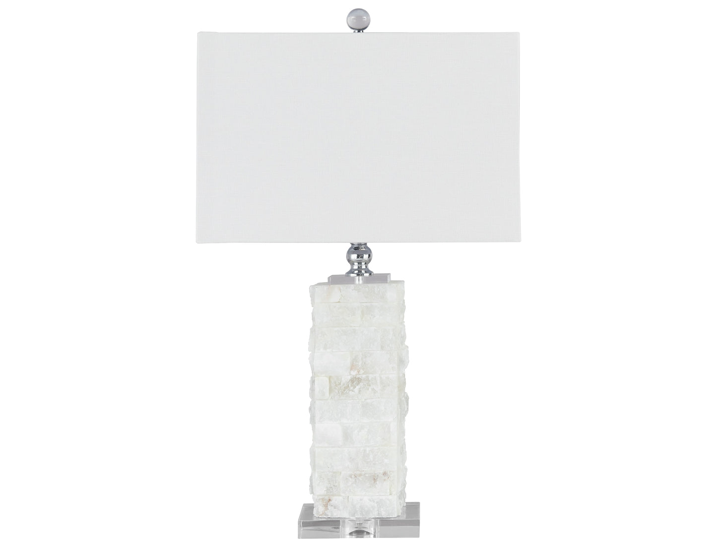 Bring a slice of paradise home with you. This lamp takes inspiration from the coastal chic trend with its uniquely crafted base, formed with chunks of white alabaster. How fashion-forward.