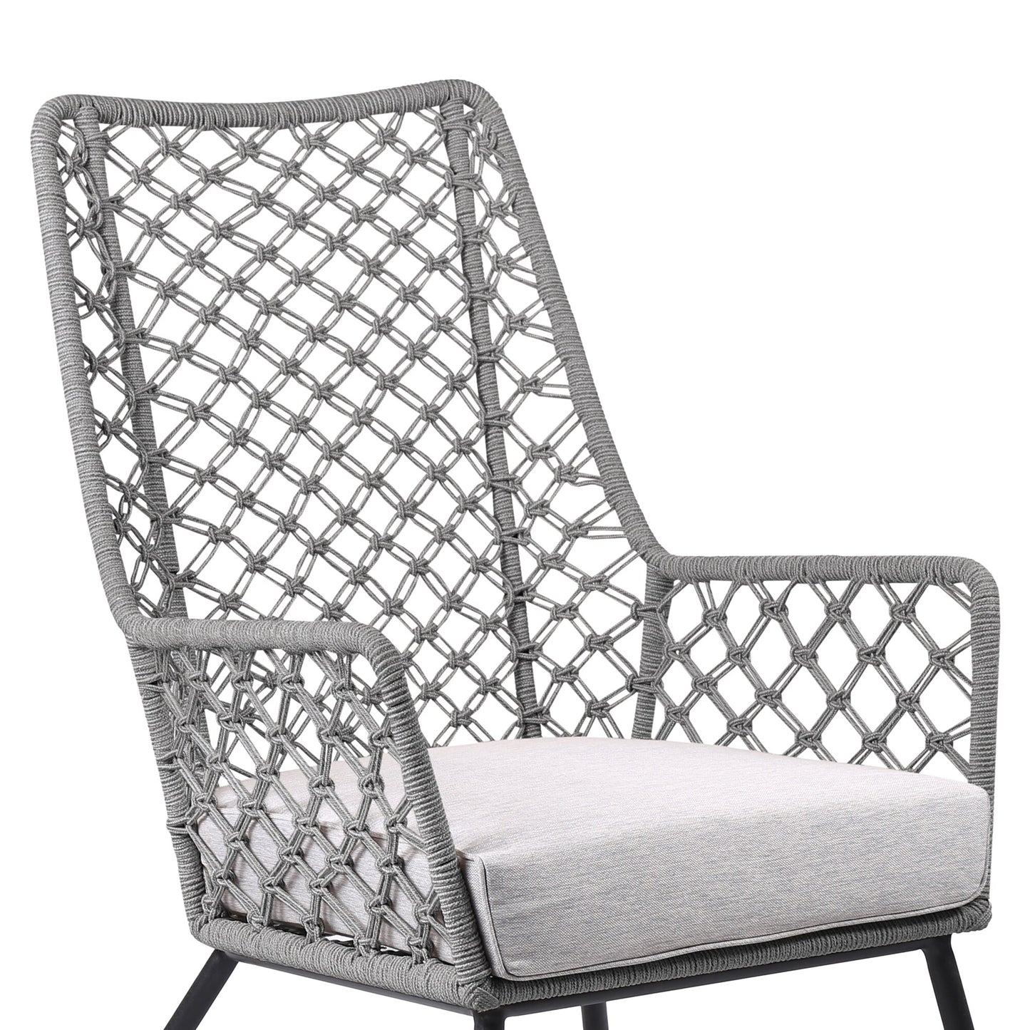 Marco Indoor Outdoor Steel Lounge Chair with Gray Rope and Gray Cushion